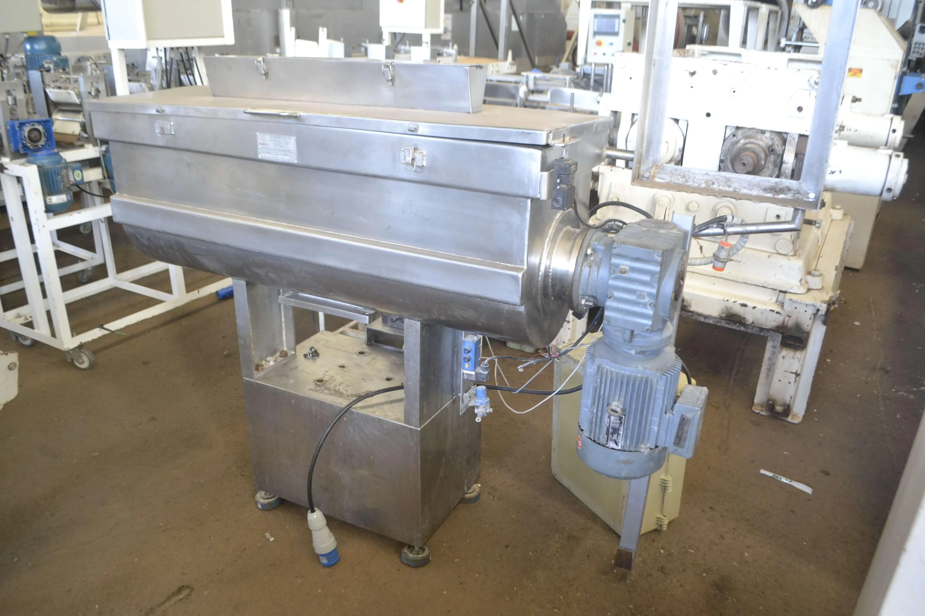 Misturador de massas 200 litros com compactadeira marca Ranazzi. Capacidade aproximada: 500 Kg/hora. Sistema composto de misturador Ribbon Blender em aço inox, com compactador, esteira de saída e unidade hidráulica marca Hidromatic. Largura do rolo: 200 mm. Motor do misturador: 4 CV. Voltagem: trifásico 220 V. Dimensões: - largura: 850 mm - altura: 700 mm - comprimento: 1,80 m