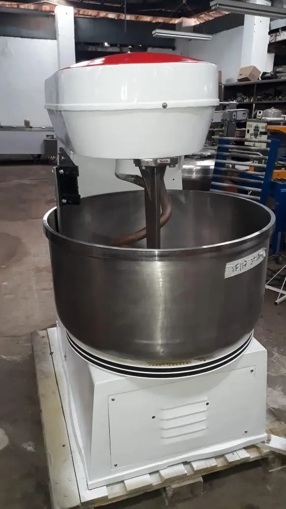 Amassadeira 100 Kg de massa Supremax. Equipamento com batedor aspiral com bojo e raspador em aço inox.