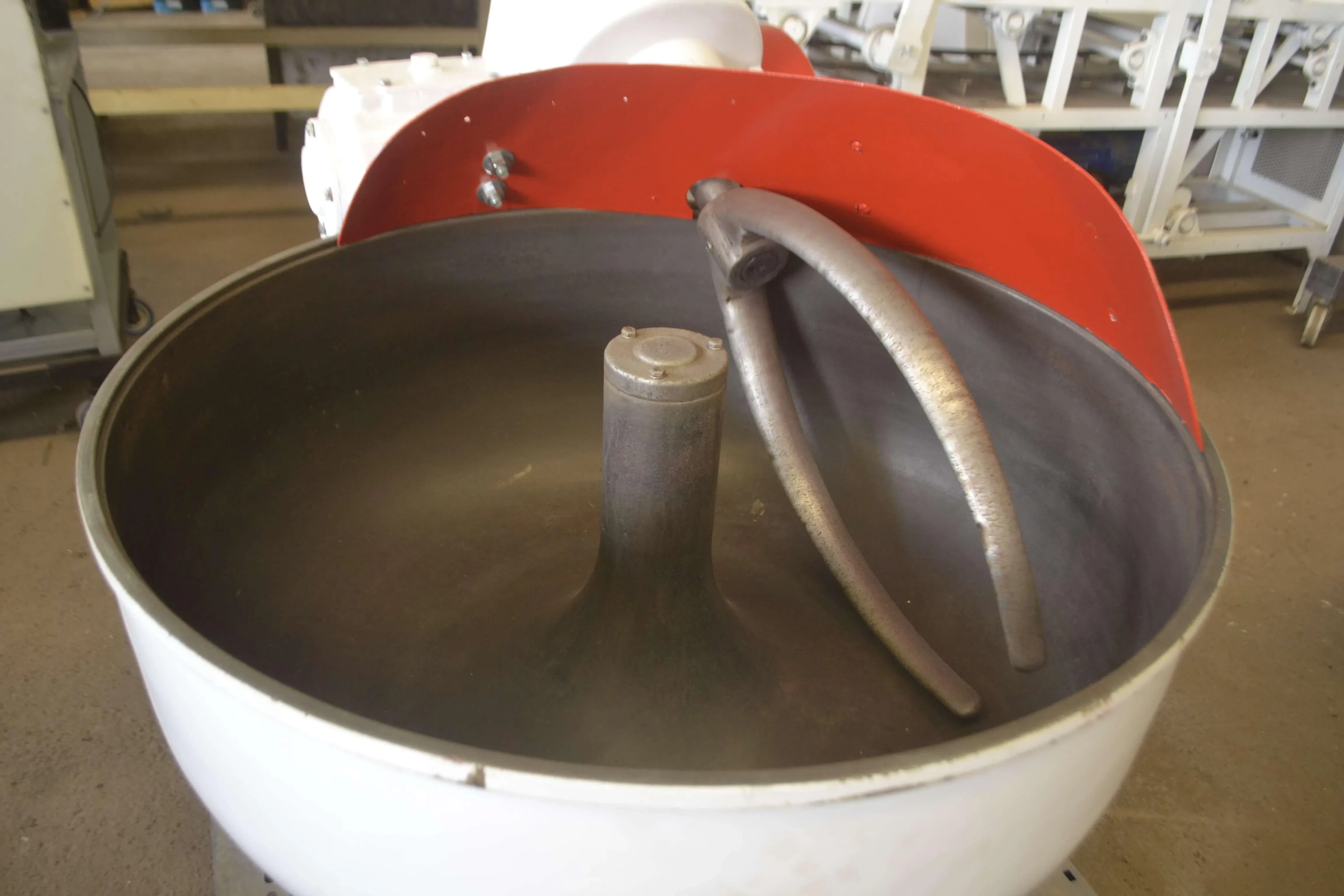 Amassadeira capacidade 150 litros. Marca: Siam. Em aço carbono com batedor tipo gancho.