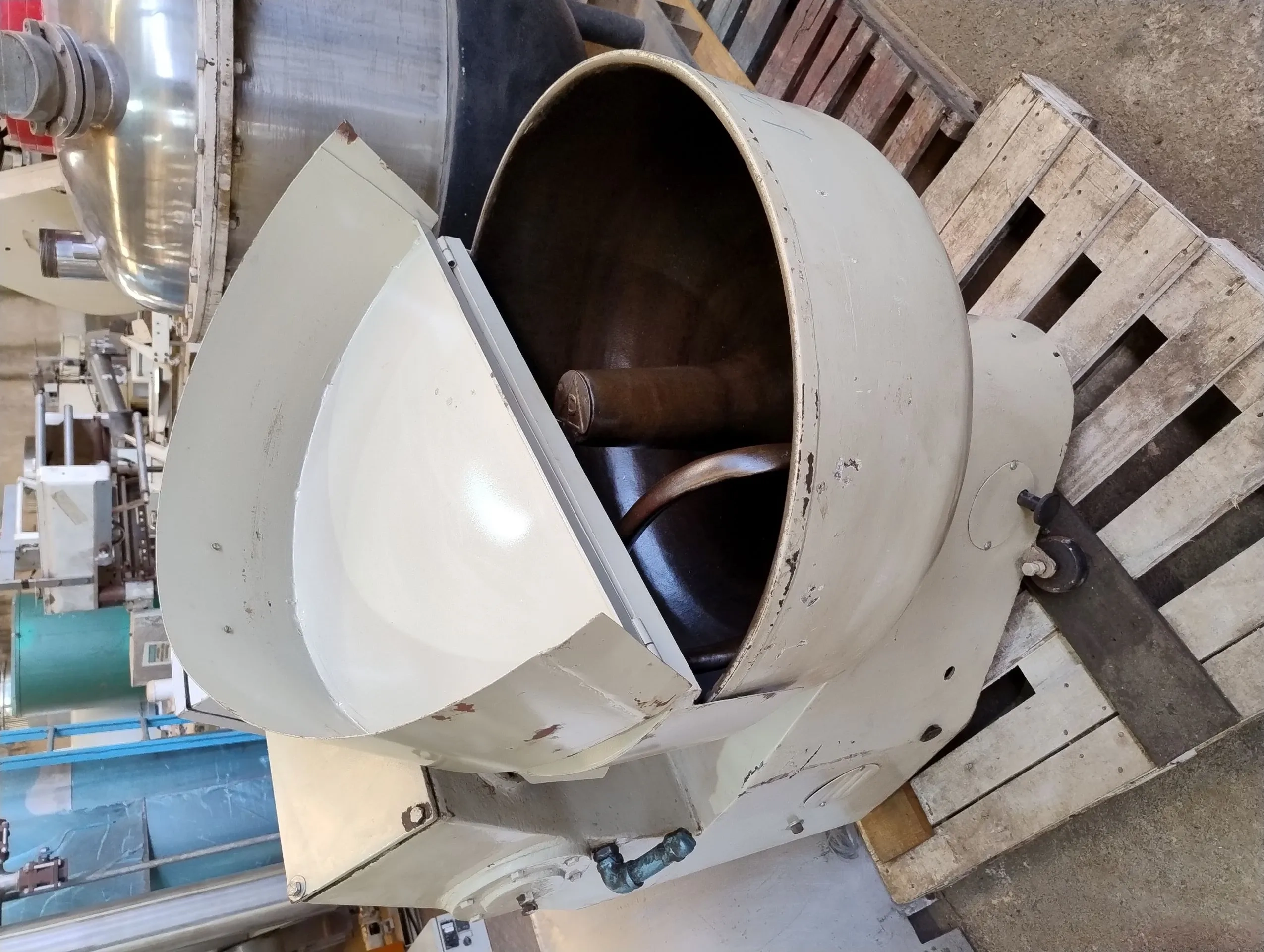 Amassadeira tipo gancho capacidade 100 litros. Equipamento em aço carbono. Quadro elétrico com botão de segurança.