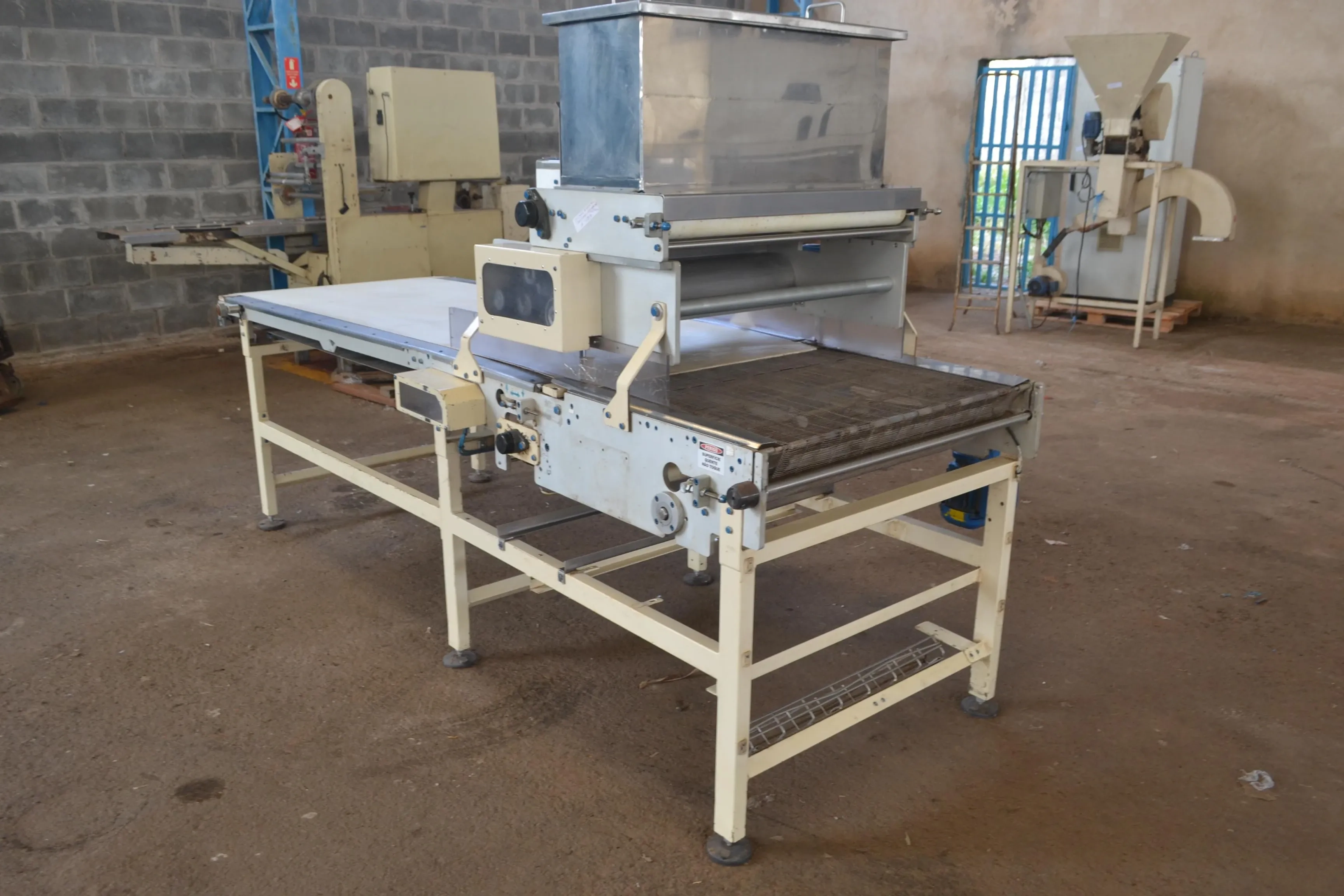 Aplicador de coco e granulado e outros por aspersão 640 kg/hora. Marca Liteq. Largura: 820 mm. Composto dos sistemas Espalhador, de recolhimento e de turbilhamento (para sistema espalhador). Equipamento com silo e esteira em aço inox. Com 4 motores. Voltagem: 220 v trifásico. Ano: 2014 Dimensões: - Largura: 1,35 m - Altura: 1,80 m - Comprimento: 3,00 m - Largura da esteira: 800 mm.