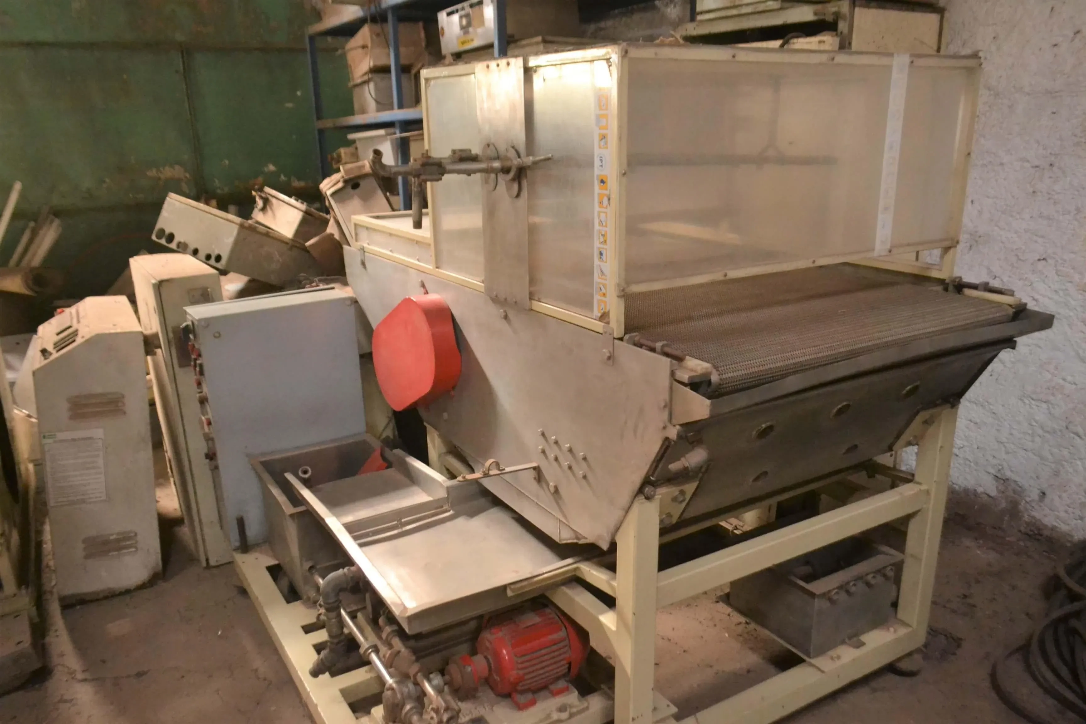 Aplicador de sal e outros. Equipamento destinado a recobrir produtos com sal e outros produtos em pó/grãos. Dimensões: - largura: 1650 mm - altura: 1600 mm - comprimento: 1800 mm - largura da esteira: 850 mm