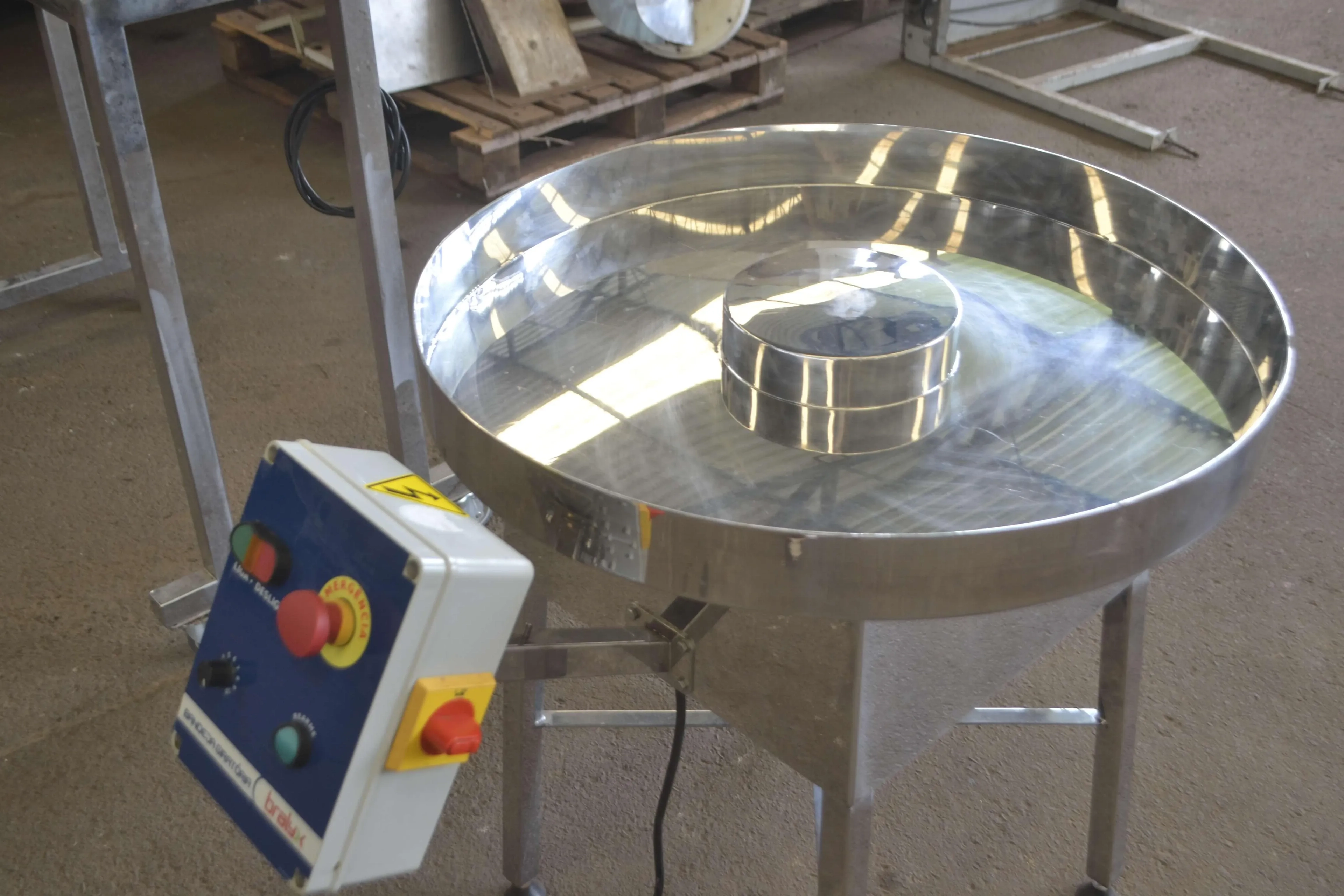 Bandeja com sistema giratório para cobrir doces com granulados (chocolate, coco ralado, gergelim, etc).