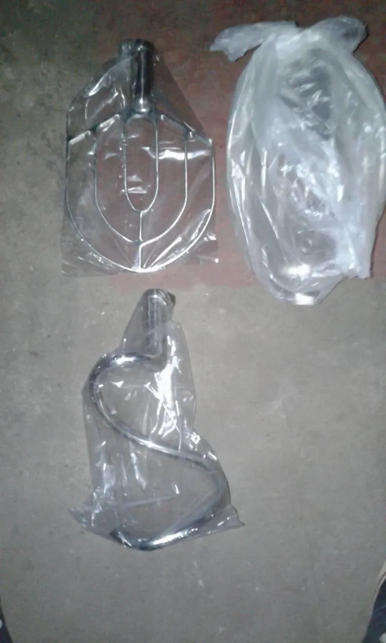 Batedeira capacidade 10 l. Equipamento com 3 velocidades e tacho e batedores (gancho, raquete, globo) em aço inox. Monofásica 220 v. Equipamento de origem chinesa (novo).