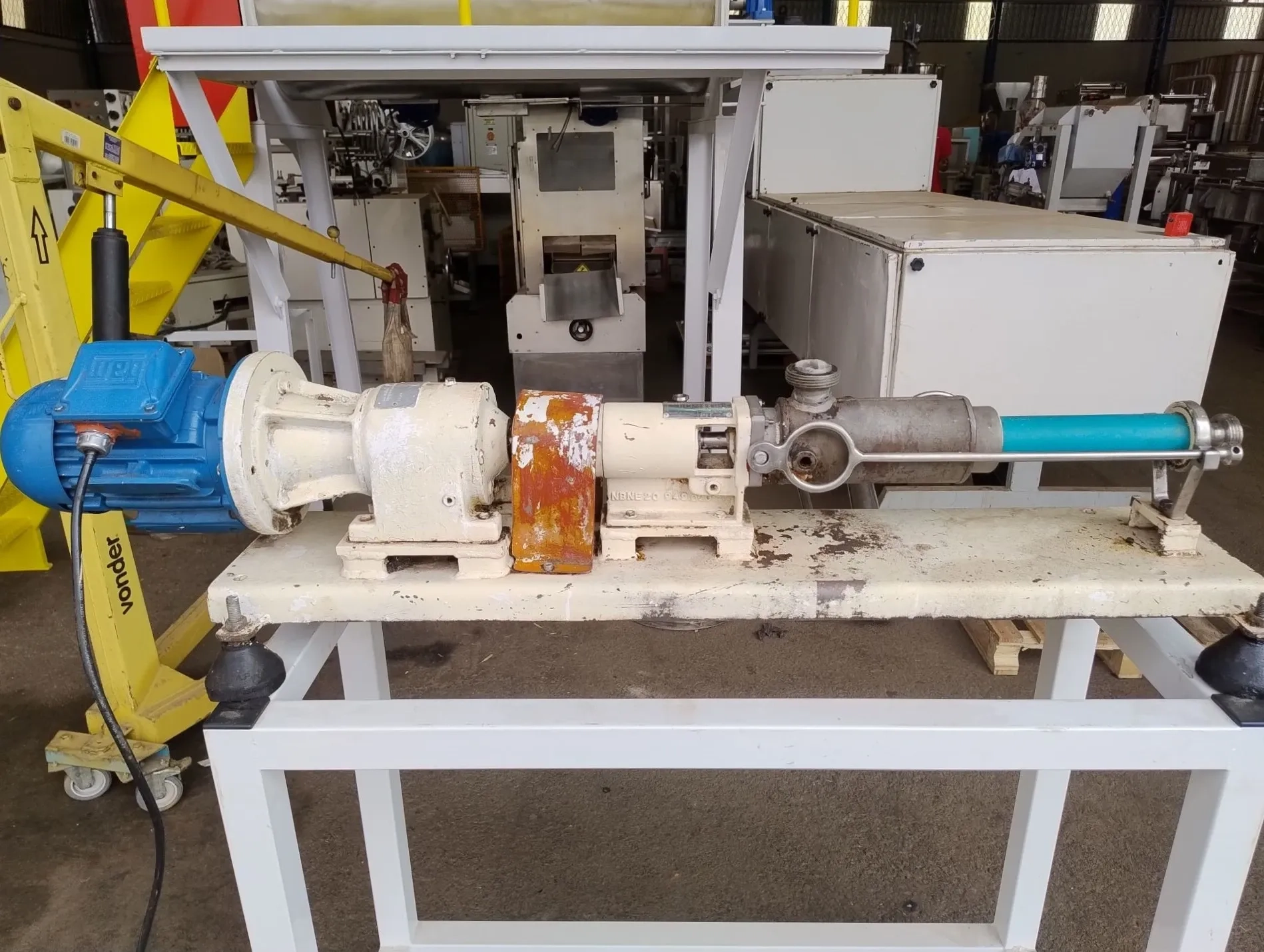 Bomba positiva helicoidal marca Netzsch modelo 2 NFL20-A. Bomba para transferência/ transporte. Conta com motor WEG de 1,5 CV / 1725 rpm. Entrada 1.1/2 polegadas e saída 3/4".