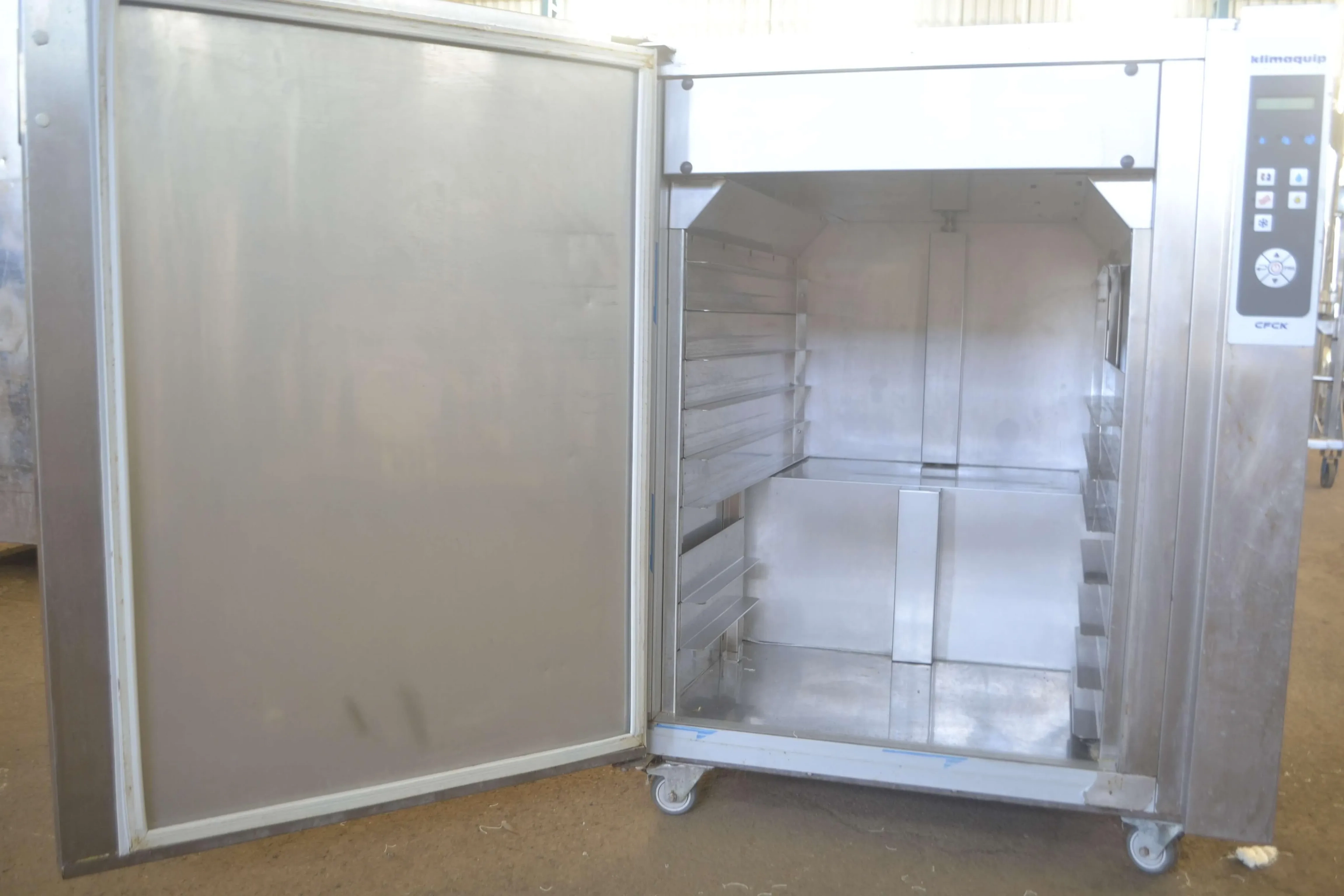 Câmara de fermentação marca Klimaquip 320 pães por ciclo. Modelo: CFCK Compact. Com 16 assadeiras, promove o controle da fermentação dos pães mantendo-os na temperatura e umidade ideais para cada receita, podendo acelerar ou retardar o processo, ou realizá-lo também a frio. Temperatura: entre 2°C a 40°C. Controle de umidade com regulagem de 4 níveis. Voltagem: 220 V/ 60 Hz.