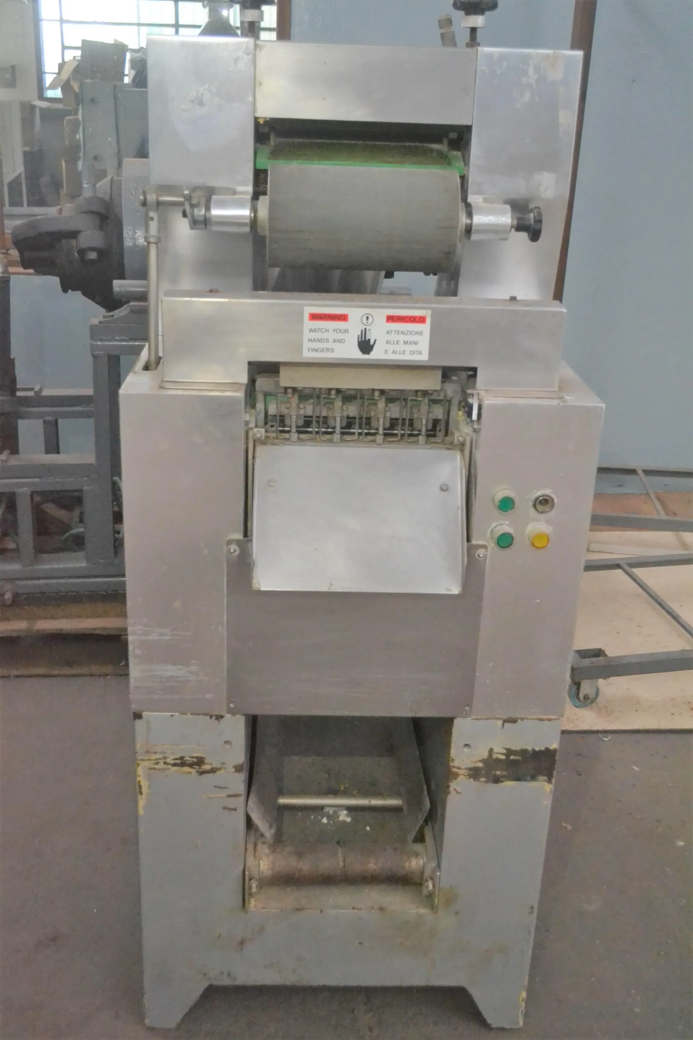 Capeleteira e ravioleteira 20 Kg/h marca Torresani. Modelo: MR 135. Equipamento com duas vias, em aço inox total. Largura da chapa: 135 mm. Recheio: 3 g. Voltagem: 220/380 v. Origem: Itália.