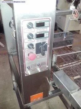 Linha Alimentícia: cobertura de maria-mole, trufa, pão de mel, bem casado, biscoitos (tipo petit four ou palito), frutas, biscoito de waffer, alfajor, merengue e outros. Construção: - O equipamento é construído em estrutura aço inox, onde são presos todos os mancais, eixos e acionamentos. - Na parte superior, o mesmo é protegido por capotas em policarbonato. - A cobrideira possui sistema de aquecimento por meio de resistência e controle digital de temperatura superior/inferior. - Painel eletrônico instalado na parte superior para melhor acesso. A máquina possui: - Caixa de cobertura superior e inferior para banhar ou não o fundo do produto - Sistema de ventilação e vibratório para retirar o excesso de chocolate - Tanque reservatório é construído em aço inox com câmara dupla de aquecimento e circulação forçada de água - Calha banhadora para formar dupla cortina de chocolate. Funcionamento: O funcionamento da máquina é totalmente automático. O produto pode ser colocado manualmente na esteira metálica da cobrideira ou por uma esteira alimentadora acoplada a máquina. A cobertura é feita através de uma cortina de chocolate formada pela roda mecânica ou bomba de engrenagens onde o chocolate é elevado até a calha formadora da cortina, o produto passa por baixo da cortina ocorrendo o processo de cobertura total. O excesso de chocolate do produto é retirado pelo sistema de ventilação e vibração. O produto, já coberto, pode ser retirado manualmente por assadeiras, automaticamente por esteira de secagem ou por túnel de resfriamento automático acoplados a cobrideira. Produção: Tomando por base um produto de 5 cm de diâmetro, com velocidade de 1 metro por minuto, terá a capacidade de cobrir aproximadamente 4.500 unidades por hora. Dimensões da máquina: Comprimento - 2000 mm Largura útil - conforme modelo Potência - 3 Kw/h Tensão Energia - 220 ou 380 volts trifásico Opcional: Inversor de freqüência; Bomba de engrenagens Trâs zonas de controle de temperatura