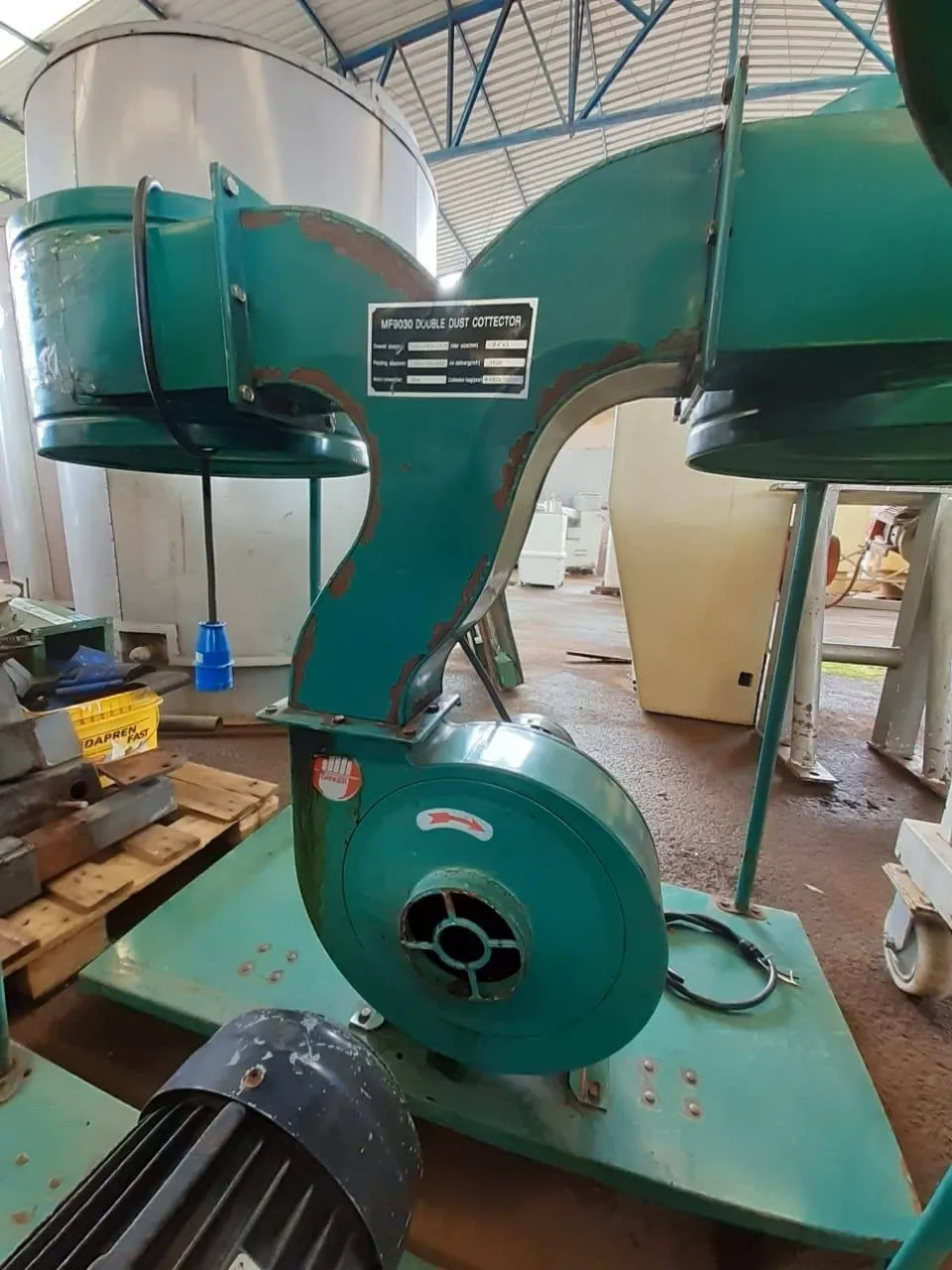 Coletor de pó para linha de produção com duas entradas. Marca Qindao Knic Technology Co. (China). Modelo: MF9030. Com a vazão de 52,5 m³/min, coleta pós de até 3 máquinas (simultaneamente) Pode ser adaptado para esquadrejadeiras, seccionadoras verticais e horizontais, tupias, lixadeiras de fita, desempenadeiras e coladeiras de bordas. Motor: 4 HP (220 V/trifásico). 2 unidades disponíveis.