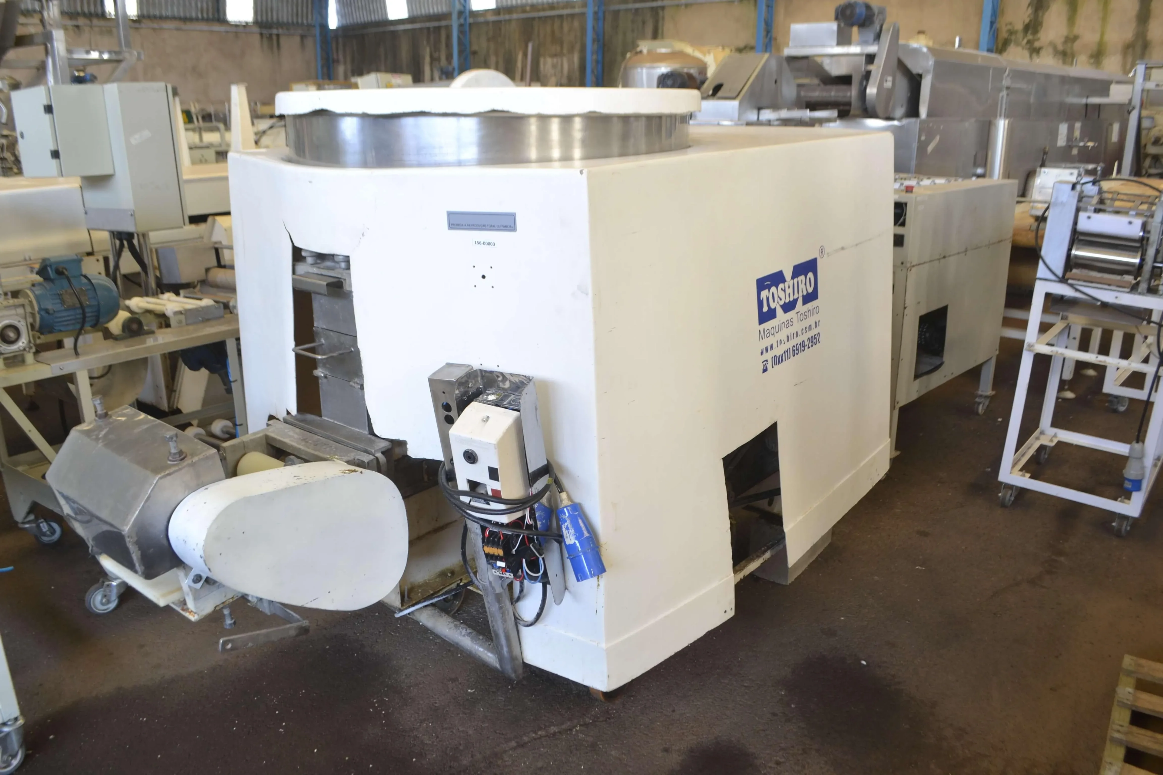 Compactadeira com masseira capacidade 100 Kg/hora marca Toshiro. Equipamento conjugado para mistura de ingredientes e compactação da massa, indicado para linhas de lasanha e pastel, entre outras. Tempo de mistura e compactação: 15 minutos/batelada. Largura da massa compactada: 200 mm. Características: - Cuba em aço inoxidável de 220 litros - Dimensões do equipamento (L x A x C): 1.30 m x 1.55 m x 2,30 m. - Motor masseira - 2 CV - Motor compactadeira - 3 CV. - Voltagem: trifásica 220 V.