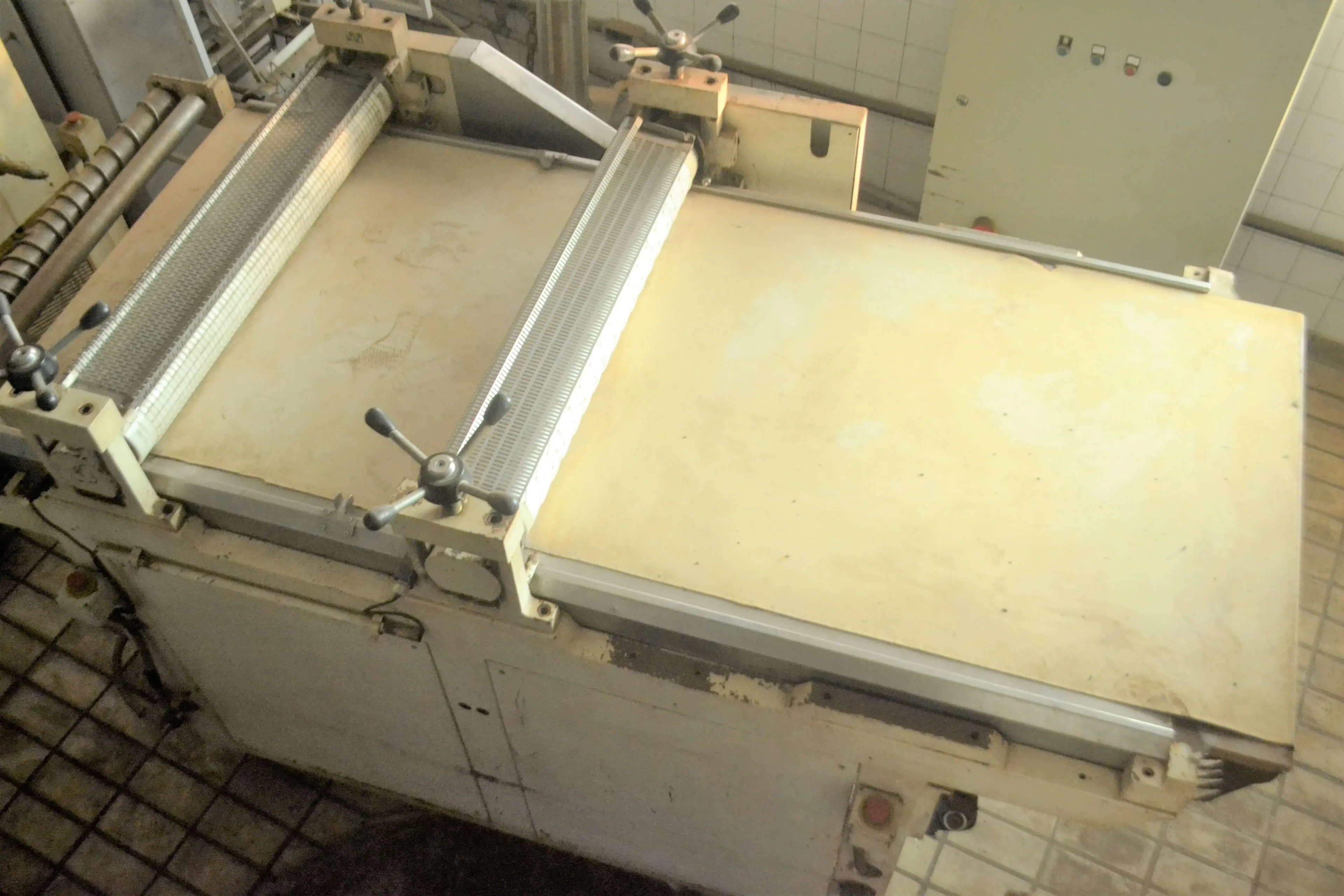 Conjunto de laminação de salgadinhos de milho marca Pavan. Produz salgadinhos dos tipos 'pastelzinho' e 'nacho'. - 1 metro de largura - Composto de sistema de preparação de massa totalmente automatizado - Dois laminadores de preparação de manta - Uma estampadora com 4 cilindros de moldagem (pastelzinho e nacho) - Conjunto de frituras marca Kuipers Food Processing, com fritador, sistema de aquecimento de óleos, esteira de transporte e outros.