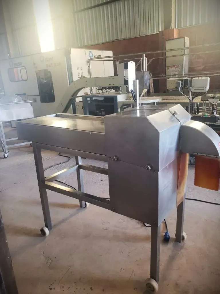 Cortadora cubetadeira em aço inox marca Incalfer modelo MMC 150. Para cortar produtos em tiras ou quadrados. Produção aproximada de até 1000 Kg/ hora. A espessura máxima permitida é de 22 mm. Construção em aço inoxidável e materiais sanitários.