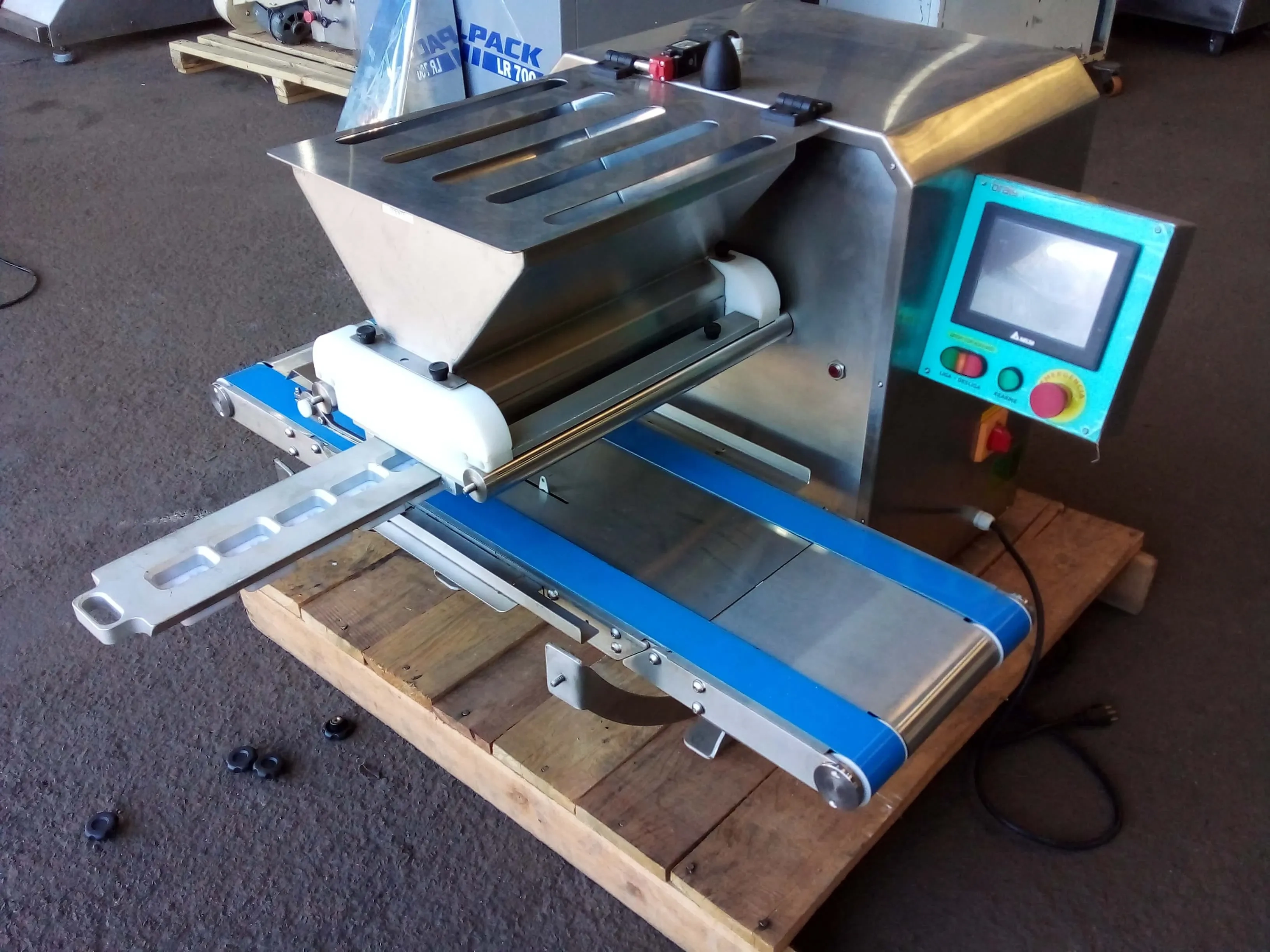 Corte de arame marca Bralyx modelo Drop-Top 400/450. Ideal para padarias, confeitarias, fabricas de biscoitos, buffets entre outros. O equipamento tem sistema de corte a fio para massas duras como biscoitos e pão de queijo por exemplo. Pode recber acessórios intercambiáveis como sistema depositador (pingadeira para massas densas) e sistema de dosagem para massas semi-liquidas e flúidas.