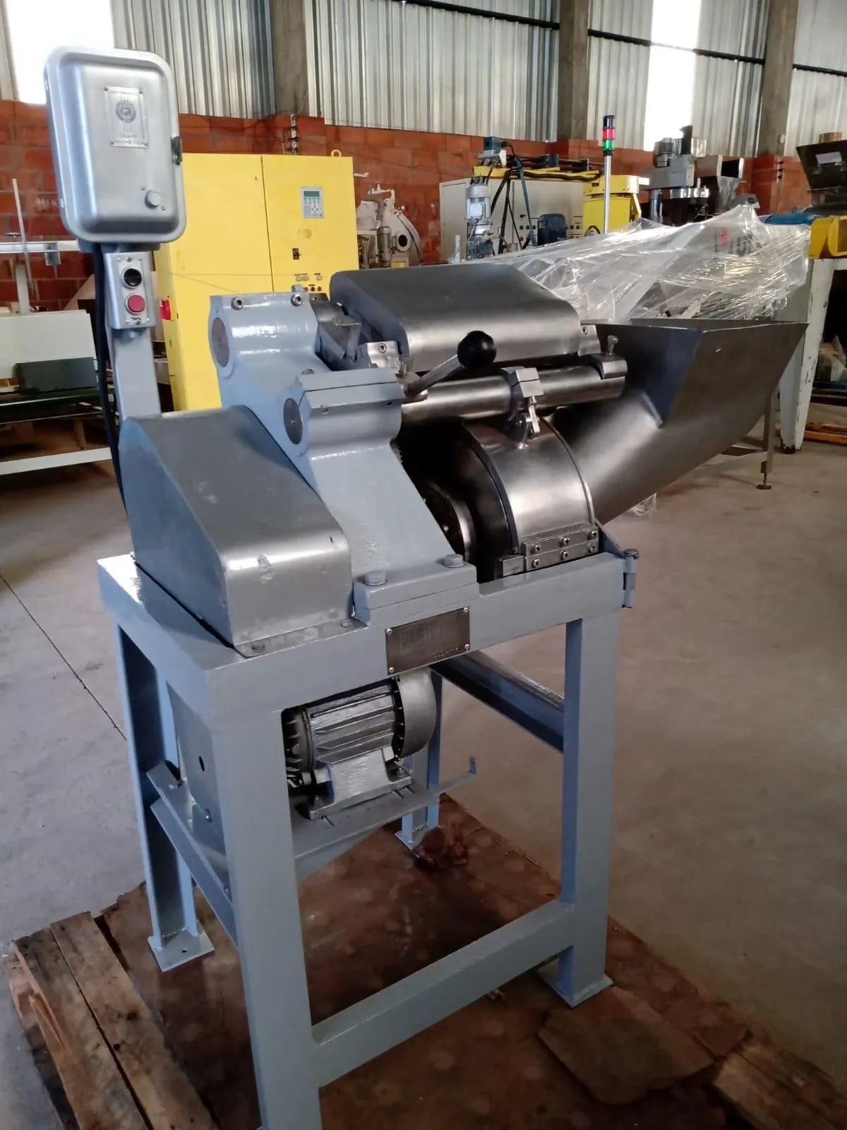 Equipamento parcialmente em aço inox. Sincronismo mecânico por um motor elétrico.