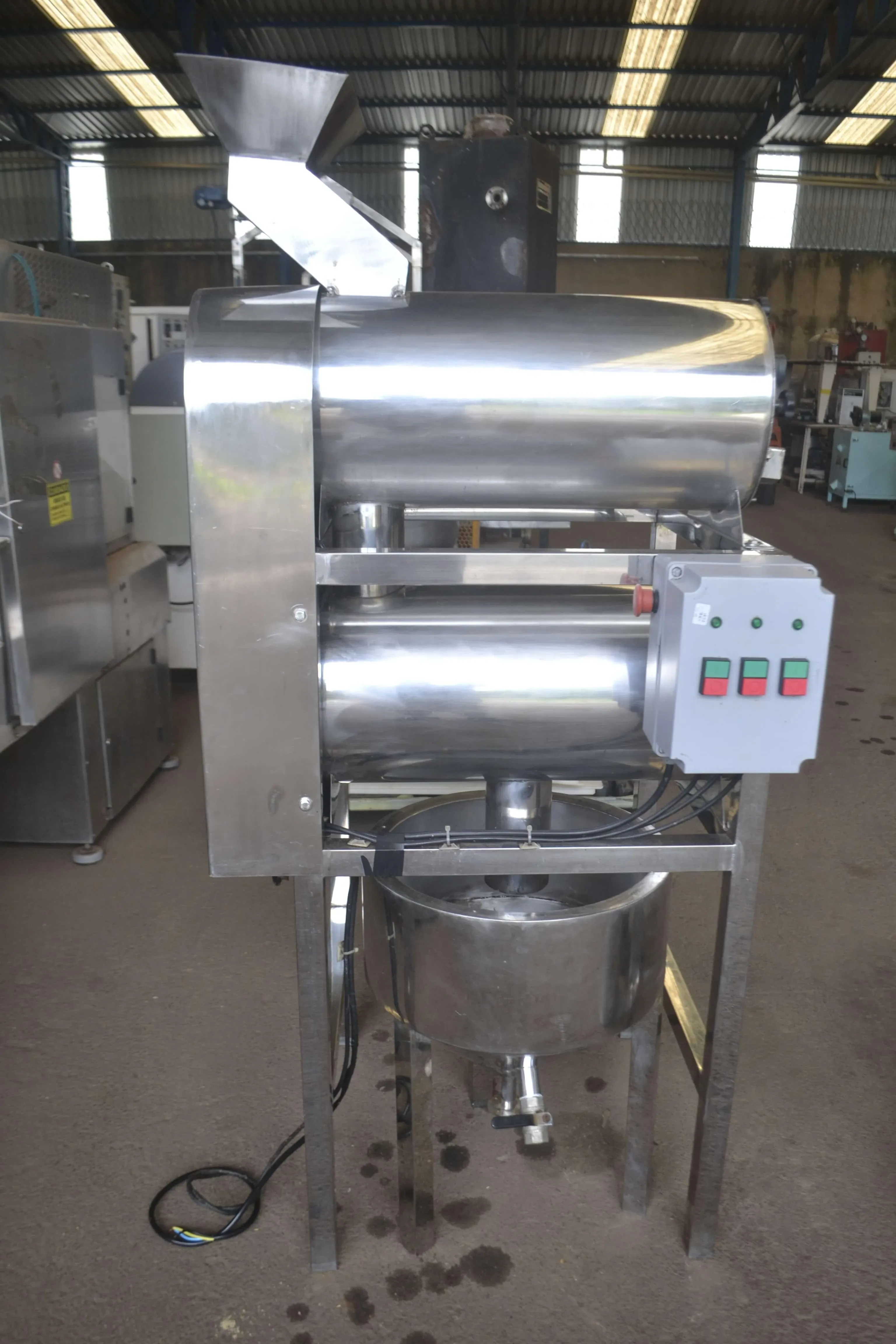 Despolpadeira horizontal de 2 estágios marca Mecamau. Com o primeiro estágio indicado a despolpa e o segundo ao refino, atende à produção de polpas de frutas para diversos fins (como compotas, geleias, sucos etc). Acompanha 3 peneiras e tanque receptor do produto.