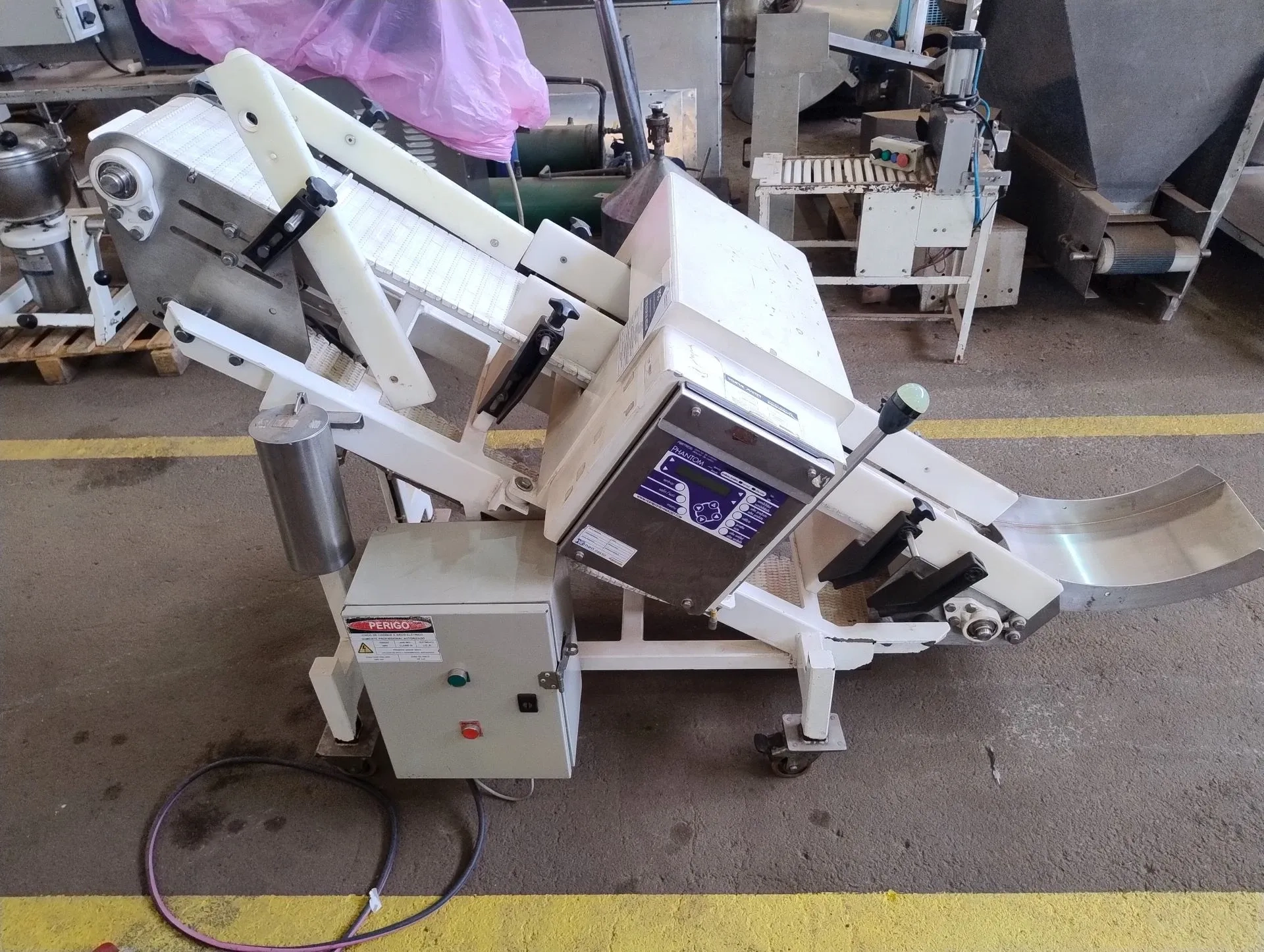 Detector de metais marca Fortress modelo Phantom. Tensão 380 V trifásico. Largura da esteira 210 mm. Altura da boca do equipamento 115 mm.