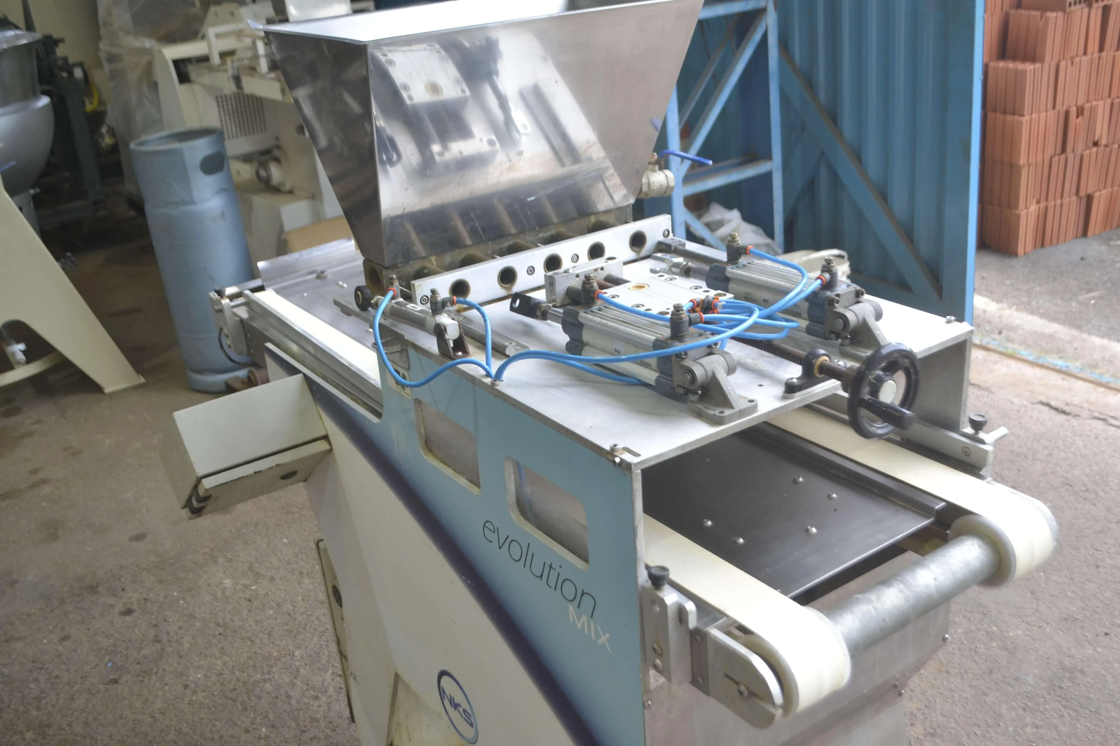 Dosadora automática 400 mm marca NKS. Modelo: EV-40. Indicada para produtos como bem-casado, biscoito tareco, mousse, gelatinas, bolos e brownies entre outras massas e recheios. Produção média: 5400 dosagens/hora.