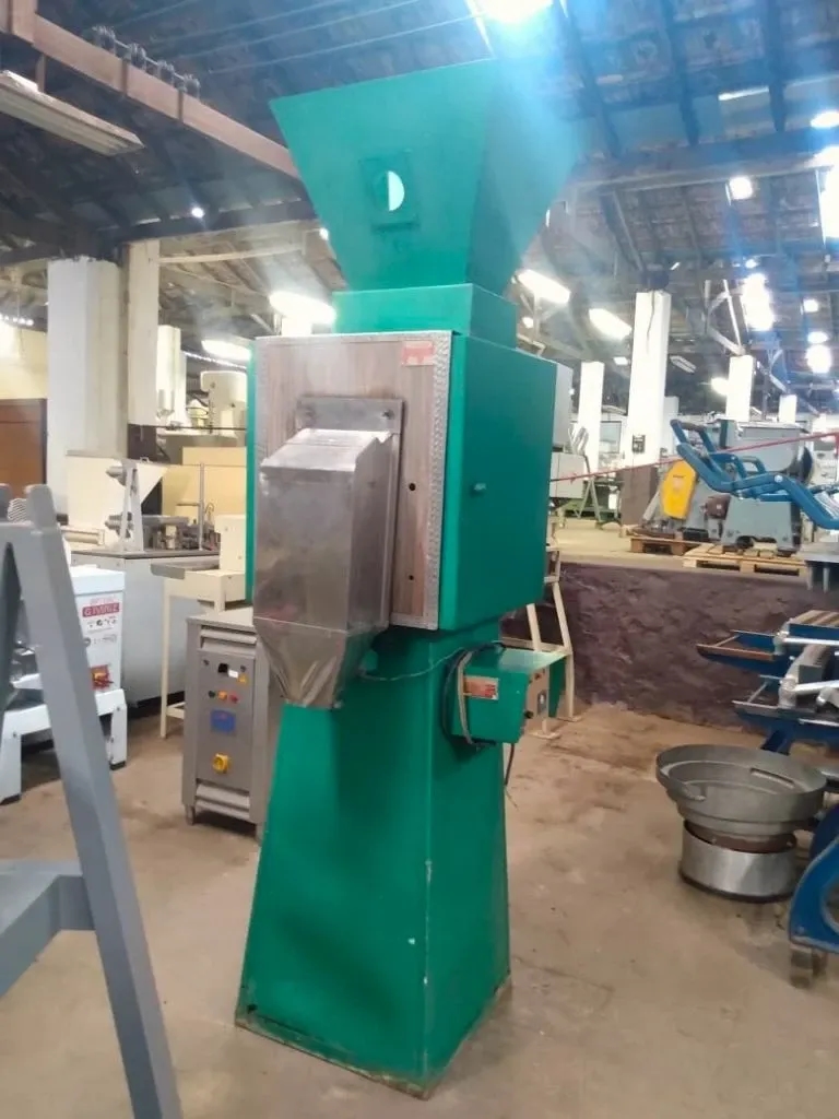 Pesadora Semiautomática marca JCV modelo Versatill. Esta pesadora é Indicada para biscoitos, batata chip/palha, bolachas, pururuca/torresmo, rações, grãos maiores (castanhas, nozes, etc.), produtos congelados (salgados, pães, pão de queijo, massas, carnes em cubos e tiras, etc.), peças plásticas, parafusos e pregos, entre outros. Peso até 1 kg. Acabamento - estrutura em aço carbono com pintura epóxi e partes em contato com o produto em aço inox, ou, estrutura e peças em contato com o produto construídos inteiramente em aço inox 304. Sistema de dosagem com três calhas, partes em contato com o produto em aço inox, peças removíveis sem utilização de ferramentas. Capacidade de pesagem de produtos secos 30 g a 1 Kg (ou conforme peso e densidade do produto). Capacidade de pesagem de produtos congelados 200 g a 5,0 Kg. Produção média de 600 unidades por hora.