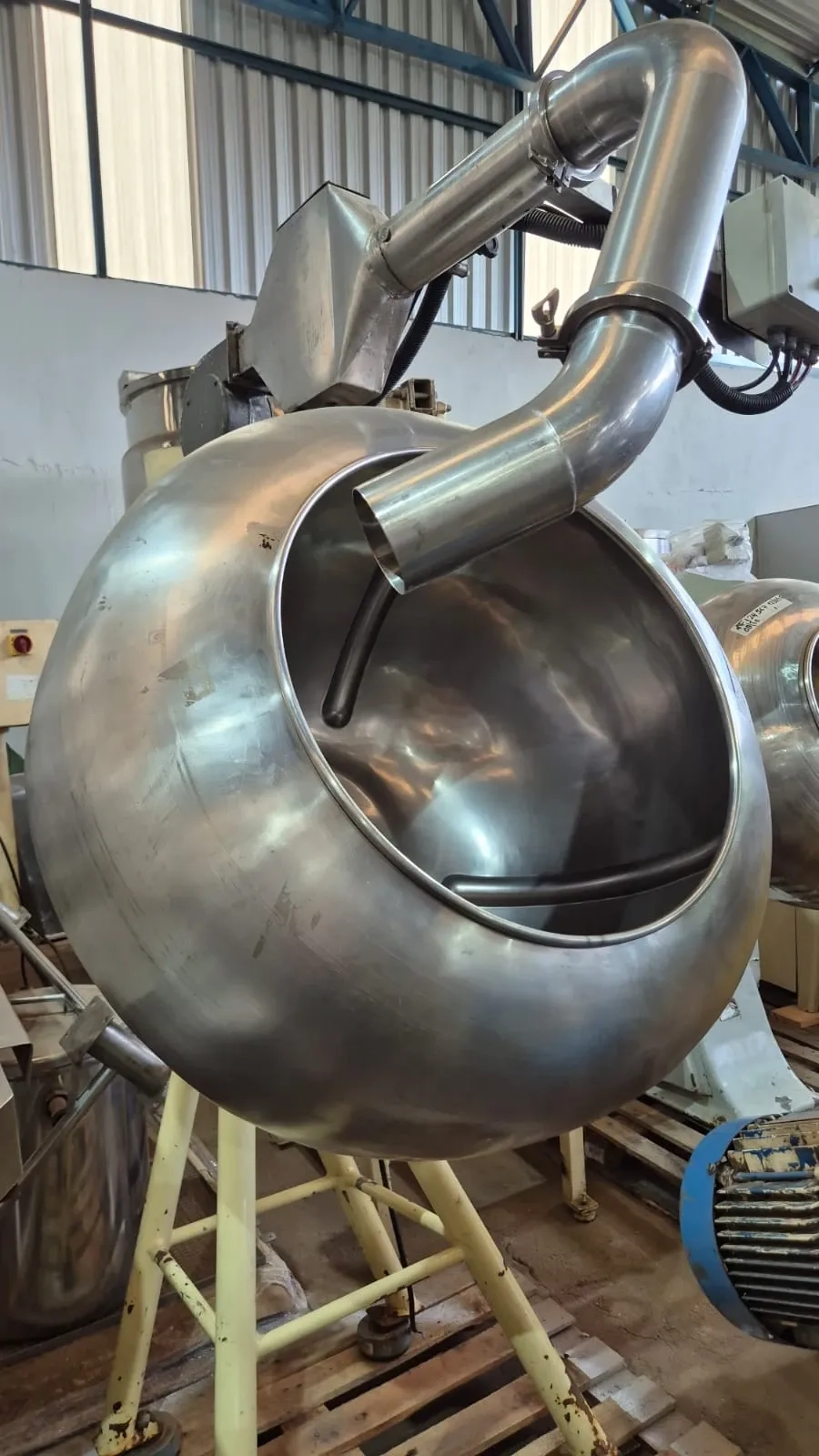 Drageadeira com aletas internas e insuflador de ar quente marca Biasinox. Capacidade aproximada 250 litros. Equipamento com bojo em aço inox e estrutura em aço carbono. Painel com controle de temperatura e velocidade de giro. Com motoredutor. Voltagem 220/380 v trifásico.