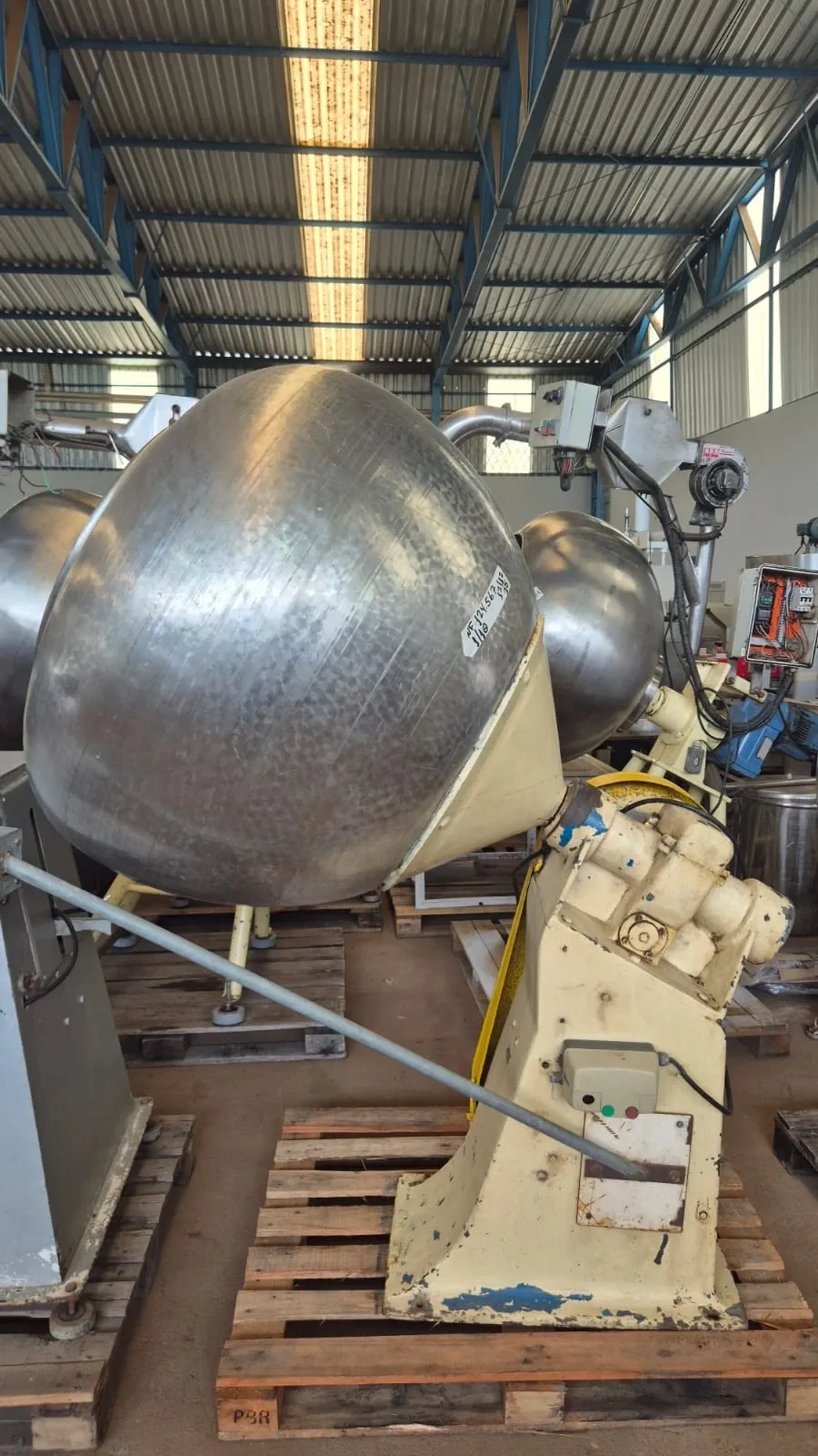 Drageadeira formato tipo pera capacidade aproximada 350 litros. Equipamento com bojo em aço inox, estrutura em aço carbono e painel com chave liga/desliga. Redução por correia.