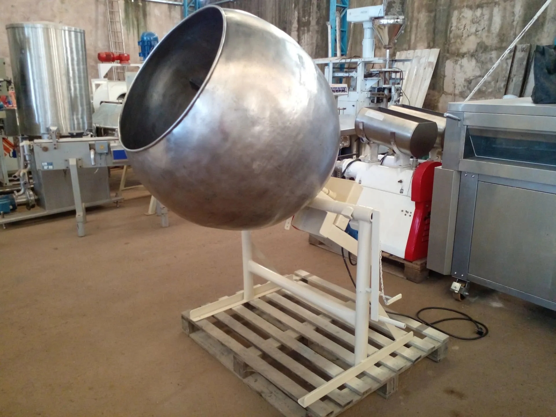 Drageadeira lisa capacidade 100 litros. Equipamento basculante para descarregamento do produto, com bojo em aço inox e aletas internas. Estrutura em aço carbono. Motor monofásico 220/ 110 V. 1/3 CV. 1725 RPM.