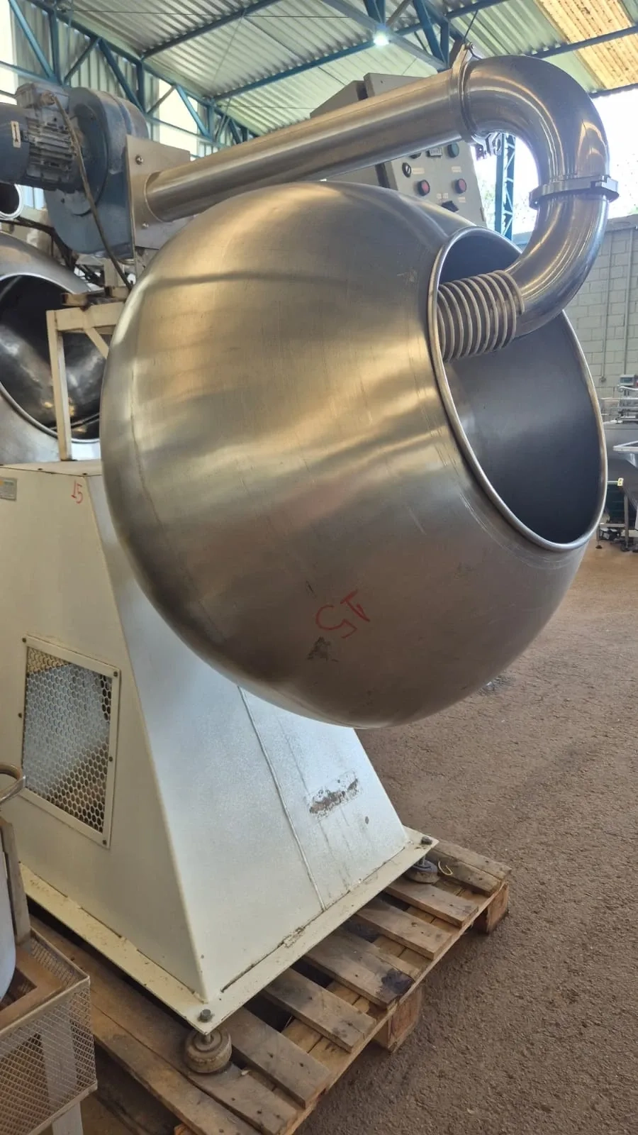 Drageadeira lisa com insuflador de ar quente capacidade aproximada 300 litros marca Apitec. Equipamento com estrutura em aço carbono, bojo em aço inox, Painel de controle composto de controlador de temperatura. Motor 2 CV /3400 RPM. Voltagem trifásico 220/380 v.
