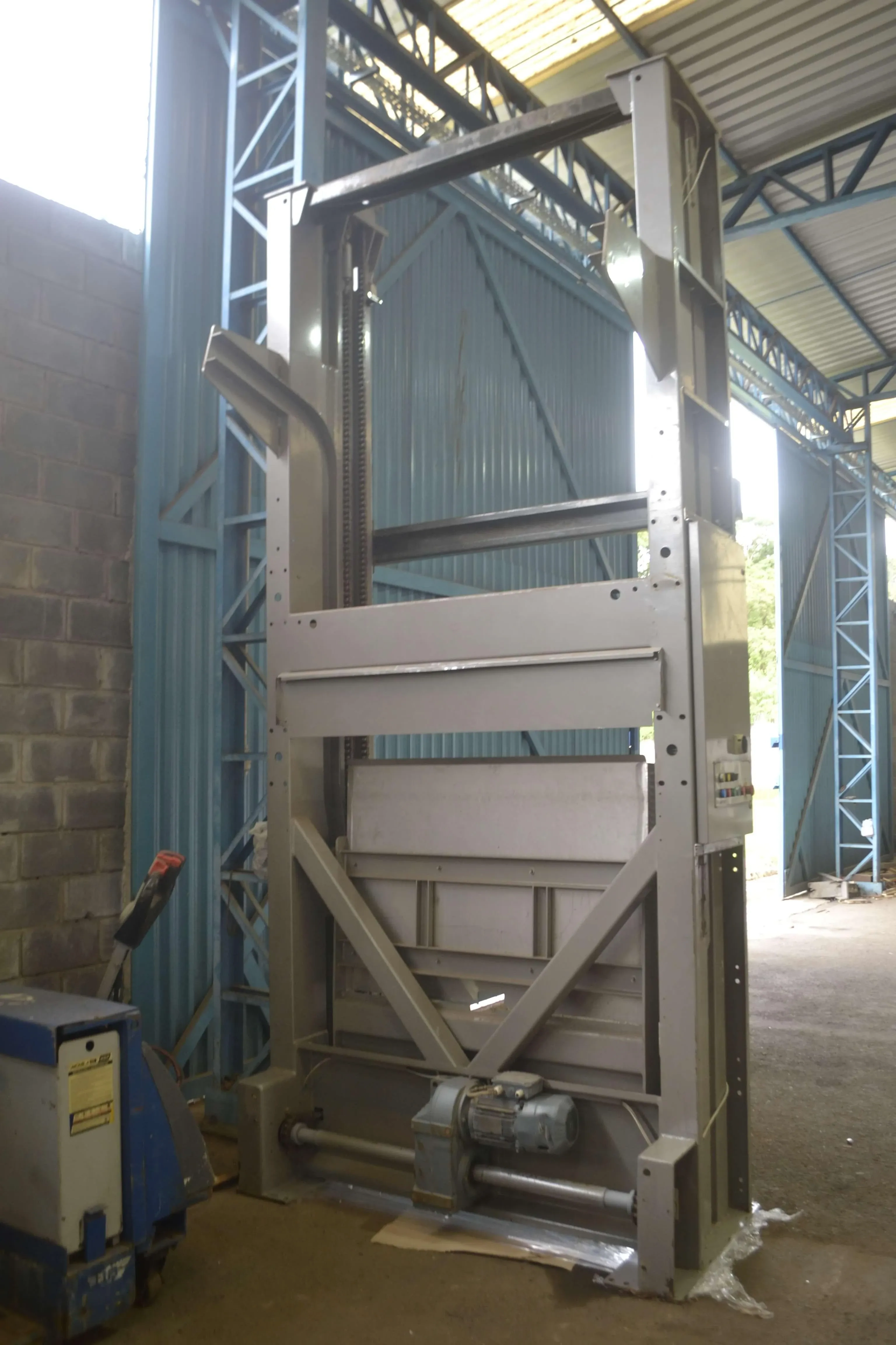Elevador de carrinho de massas até 800 Kg marca Startec Máquinas. Foi desenvolvido para o abastecimento de recipiente de massa para recheadora, misturadores contínuos, silos de alimentação de máquinas. Possui um sistema de elevação de carga automático e um sistema de giro do suporte do carrinho de massa guiado, possibilitando o descarregamento total da carga do carrinho.