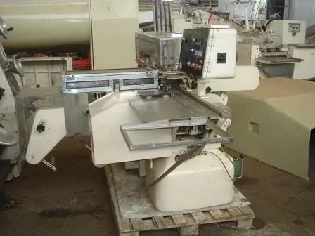 Embaladora de dupla torção marca Forgrove. Modelo 22 B. Equipamento destinado a embalagem de produtos como trufas, bombons, balas e outros em dupla torção. Pode ser adaptado para embalagens em alumínio - para corpos redondos, quadrados, retangulares ou uniformes em acabamento bunch (tipo Alpino). Produção aprox.: 40 unidades min.