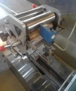 Embaladora flow pack Nanyang Food modelo DBZ-280. O equipamento possui mordente duplo, CLP, foto célula e bobineiro especial (tracionado). Medida do bobineiro: 180 mm de largura. Acoplando o alimentador a produção pode chegar aproximadamente até 600 embalagens por minuto. Esteira: 2.100 mm de comprimento x 560 mm de largura. Dimensões: - altura: 1,55 m - largura: 1,05 m - comprimento: 4,00 m