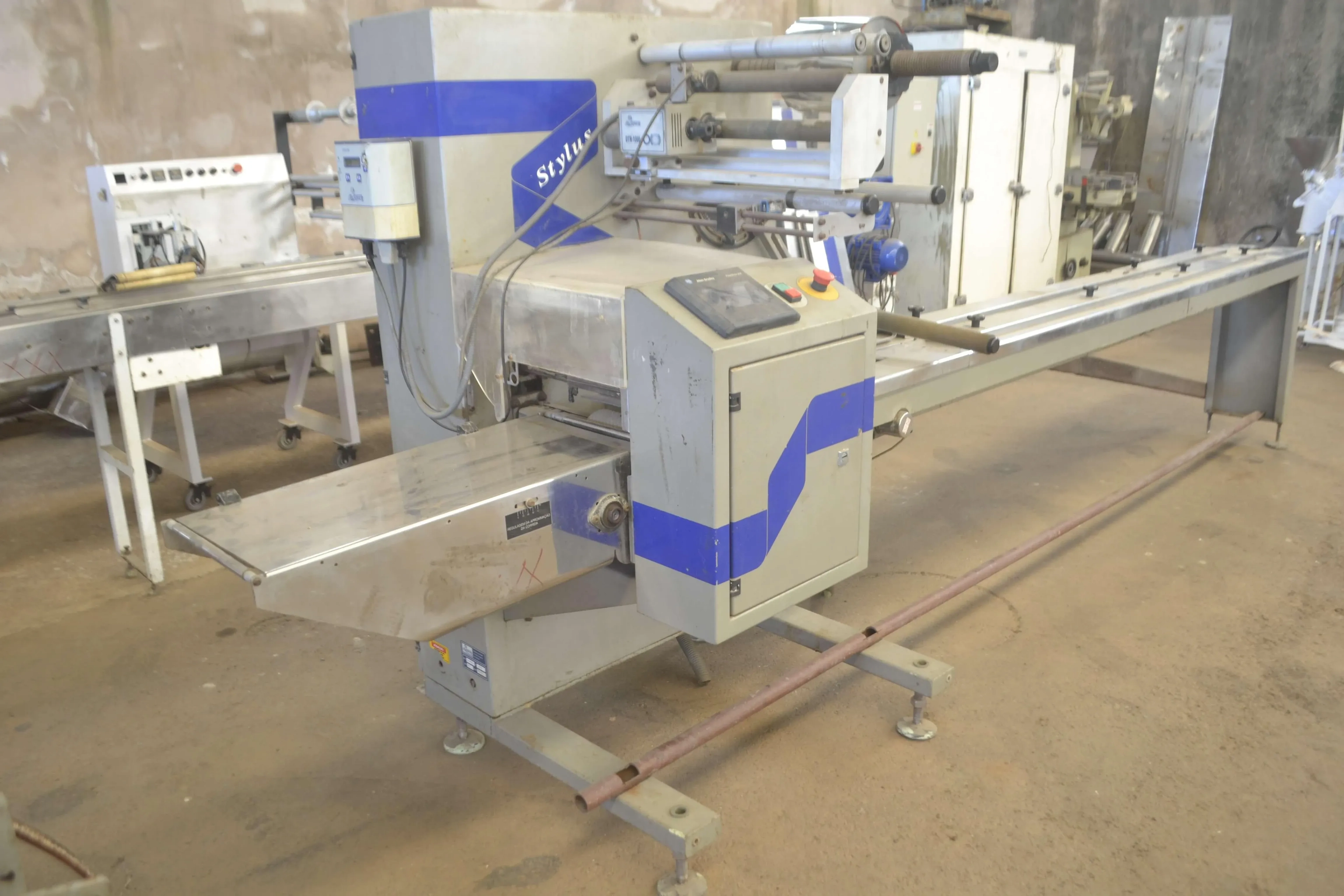 Embaladora flowpack Stylus Masipack. Velocidade: 120 pacotes por minuto. Indicada para diversos produtos, como chocolates, sabonetes, peças etc. Possui proteções em toda sua área de desbobinamento e selagem, atendendo as normas vigentes de segurança e operação, Largura máxima da bobina 350 mm.