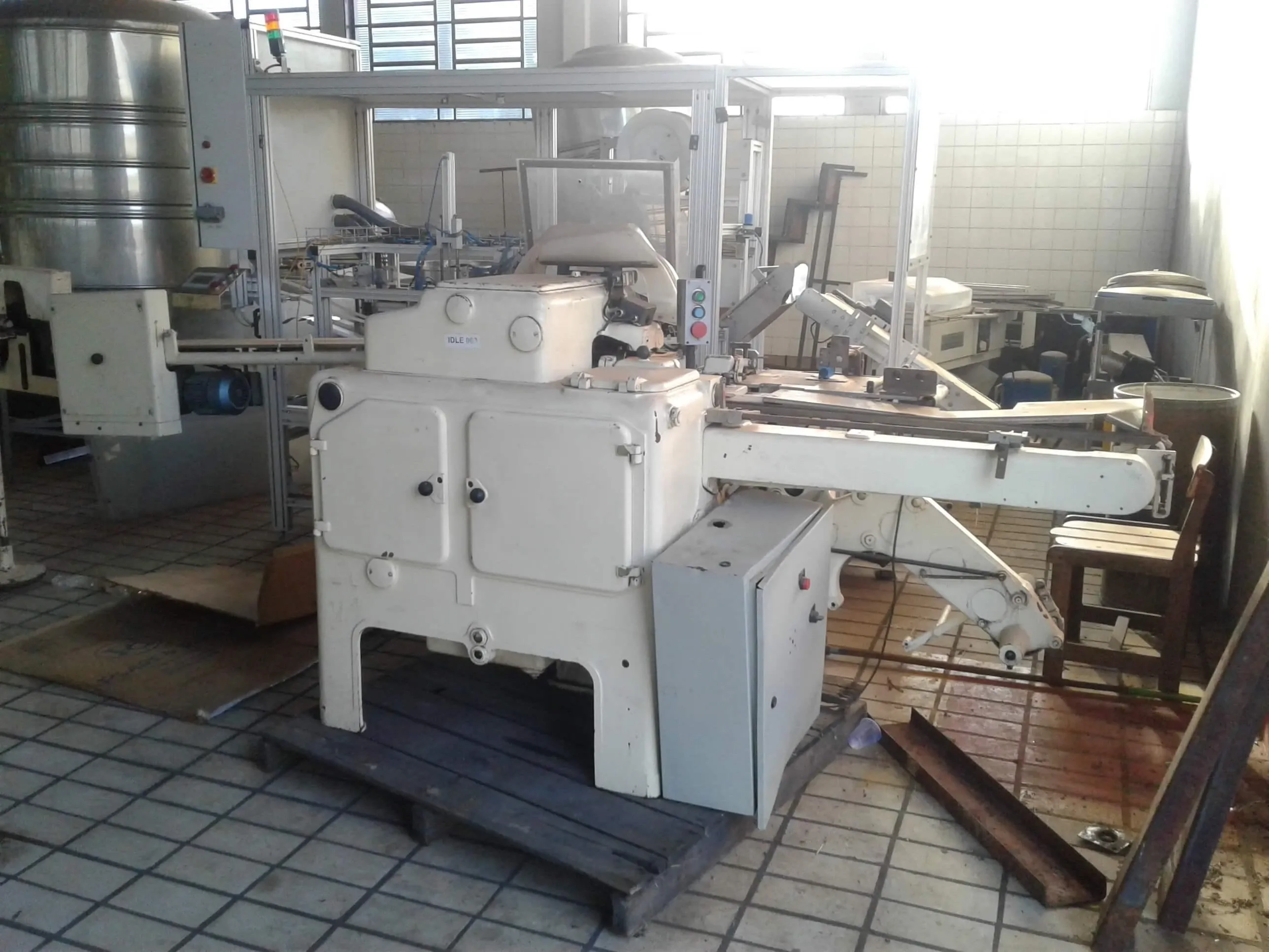 Embaladora para tabletes de chocolates (Portfólio). Marca: FR.Hesser. Atende portfólio com 2 embalagens - alumínio e couchê. Equipamento reformado.