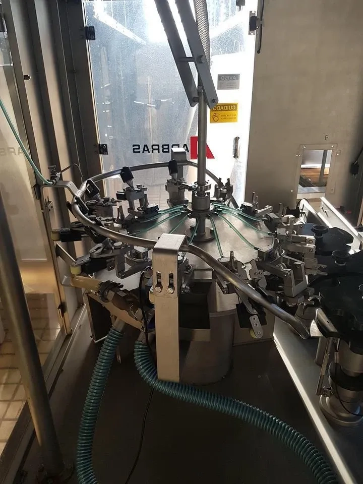 Enchedora e tampadora Arbrás. modelo: 12/4. Trabalha com garrafas de vidro ou plástico de 200 ml a 3 l, de líquidos com ou sem gás.