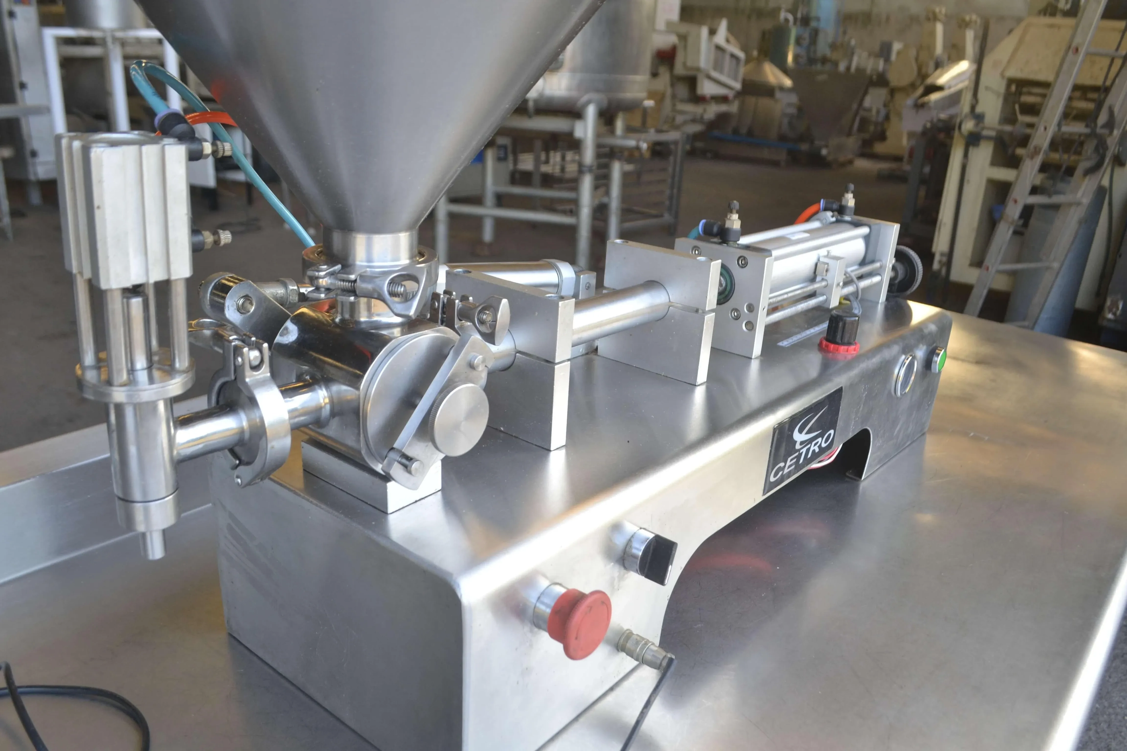 Envasadora de Produtos Pastosos de 10 a 100 ml marca Cetro. A Envasadora é utilizada para o envase semiautomático de produtos pastosos, com precisão exata na quantidade a ser envasada, sem variações. A Envasadora de Pastosos da Cetro possui mecanismos de precisão, dando mais produtividade, sem perdas para sua produção.