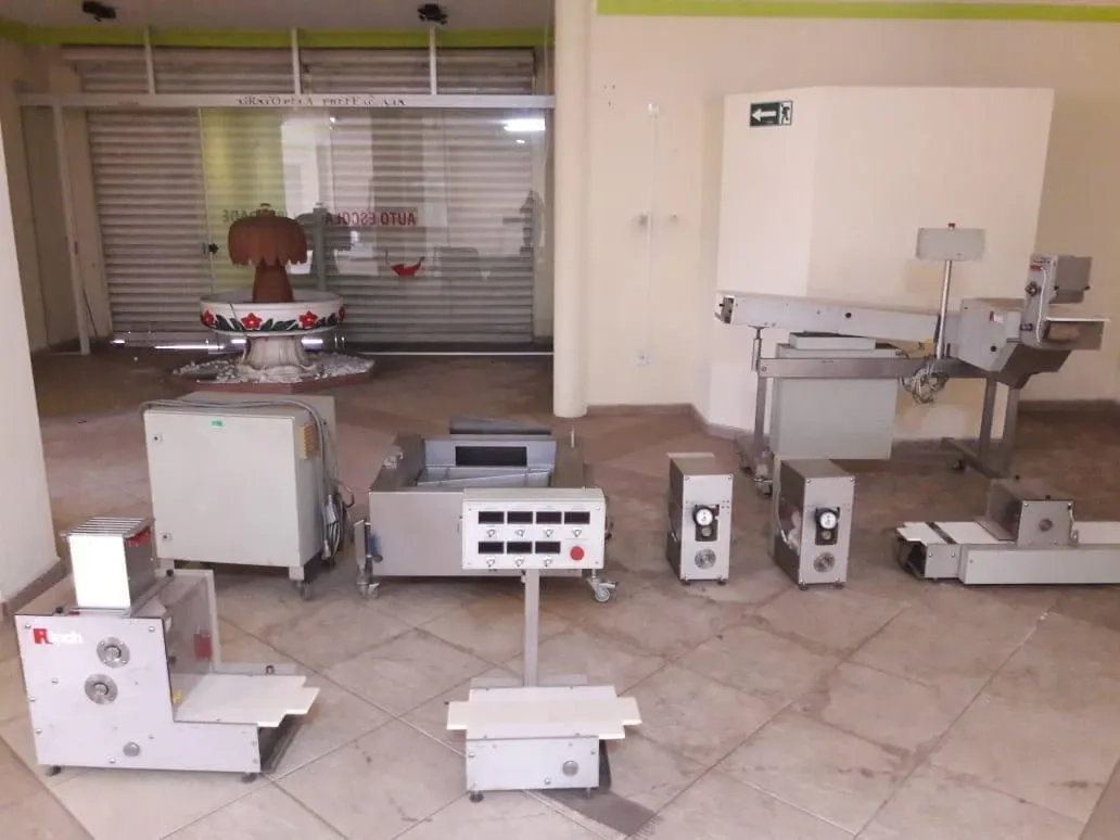Planta piloto de biscoito cracker. Planta com clindro, moldadora, cortador, esteiras de transporte e misturador. Marca: RTech.