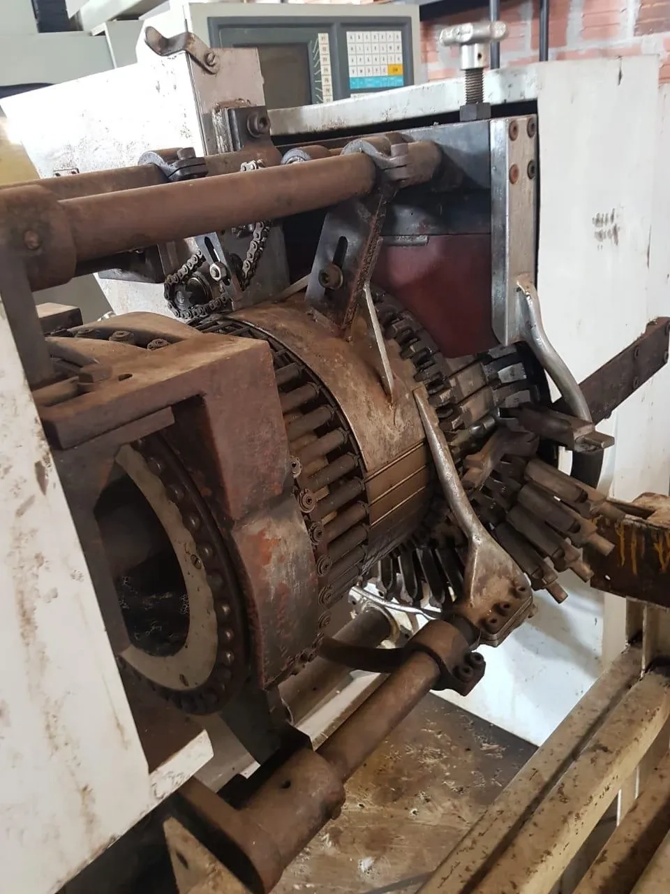 Estampadeira de pirulitos com trafila marca Carneiro Estampos. Equipamento com dois estampos em aço com tratamento térmico. Produção aprox: 300 Kg/h.