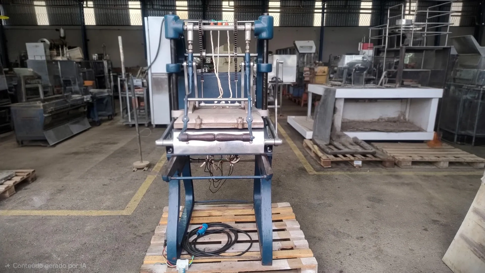 Fabricadora de casquinha biju marca Sicola. Produz biju (casquinha) para sorvetes e doces. Custo de Energia de 14.000 KW/Hr e produção de cerca de 3 caixas com 300 casquinhas por hora. 60 compartimentos para formação de bijus.