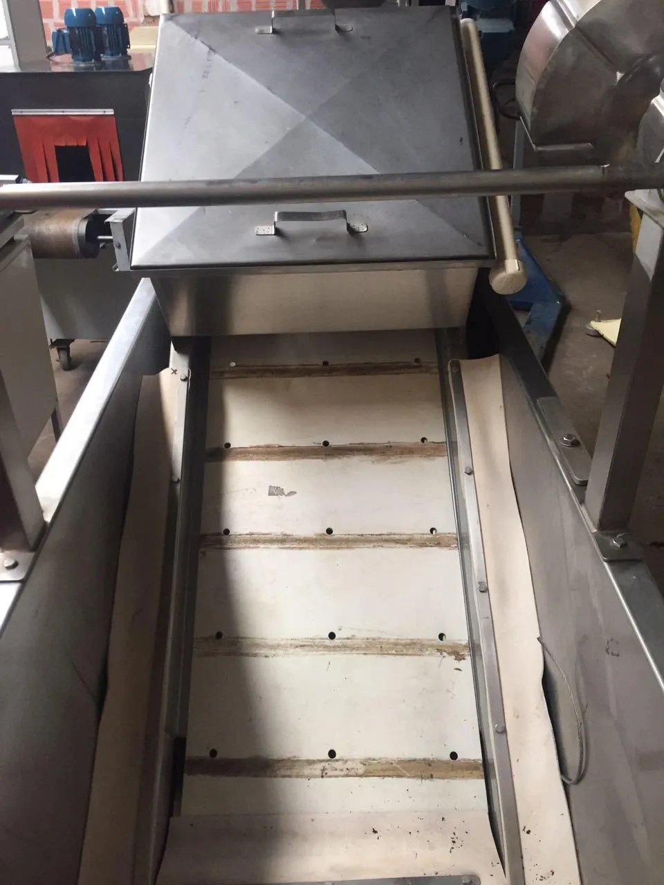 Lavador de frutas marca Mecamau. Lavador para frutas, timo, imersão, borbulho e chuveiro composto de tanque com soprador para movimento de água; esteira de correia sanitária com talisca e sistema de evaporação. Motor: 2 CV.