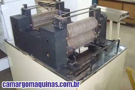 Linha completa para fabricação de bala marca Mota, com 3 laminadores, corte longitudinal e transversal. Para balas moles tipo 'toffe'.
