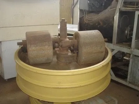 Melangeur capacidade 1000 litros. Equipamento com cuba (interno) e rolos em mármore.
