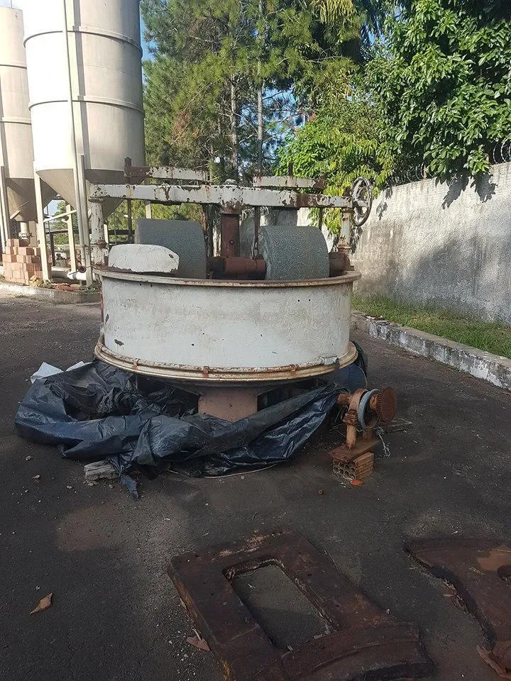 Melangeur capacidade 1000 litros. Equipamento com cuba (interno) e rolos em mármore.