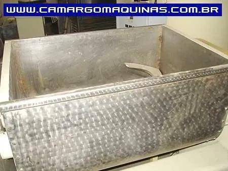 Misturador com tombamento automático com capacidade para 300 litros em aço inox, com 2 eixos e tombamento pneumático.