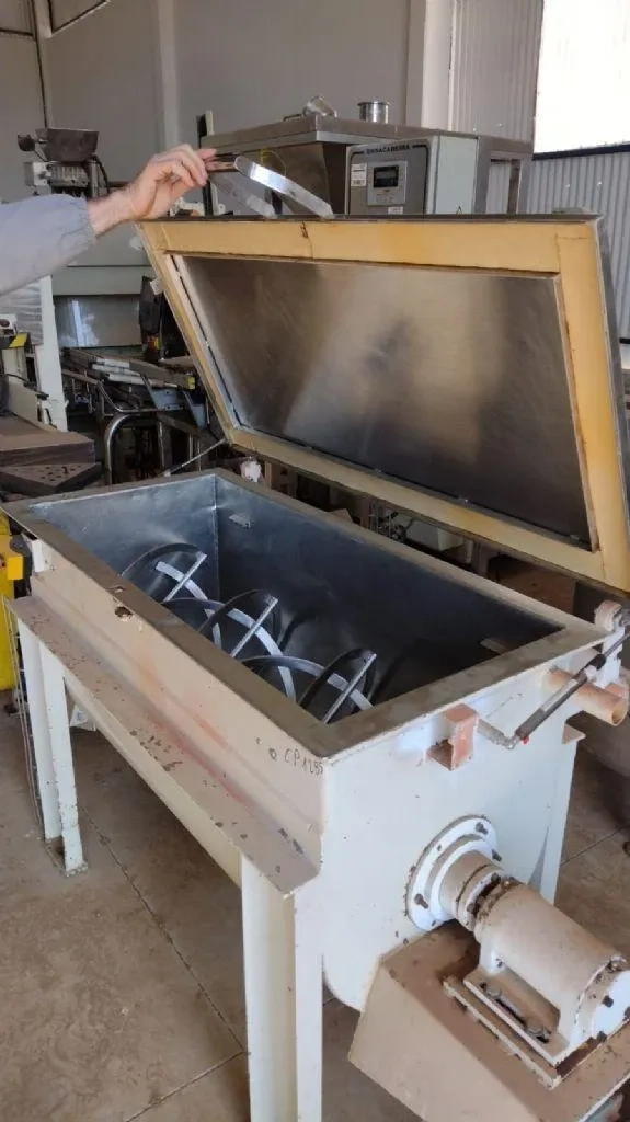 Misturador ribbon blender encamisado para pós em aço inox. Com estrutura em aço carbono. Capacidade aproximada 300 litros. Motor Eletro Globo 3 CV.