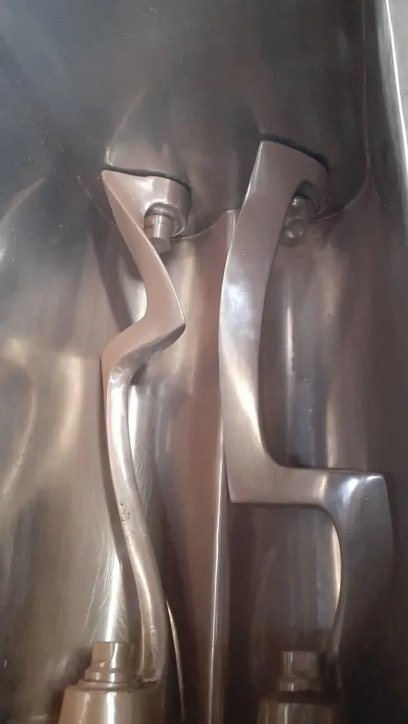 Misturador Sigma em aço inox com rosca extratora com dois eixos para 500 litros. Possui motores, painéis e engrenagens de redução.