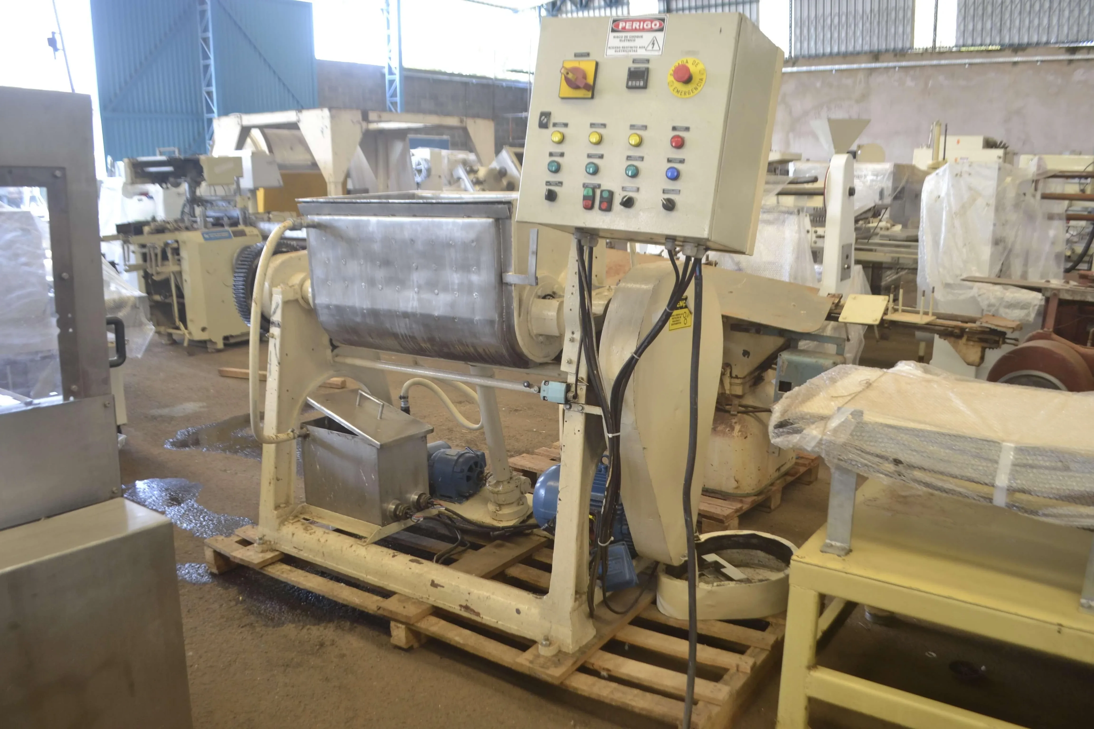 Misturador Sigma encamisado capacidade 200 litros. Equipamento basculante, com tombamento automático, e aquecimento através de banho maria (autônomo). Motor dos misturadores: 10 CV. Voltagem: trifásico 220/380 V. Dimensões: 500 mm larg x 800 mm comp x 500 mm profundidade.