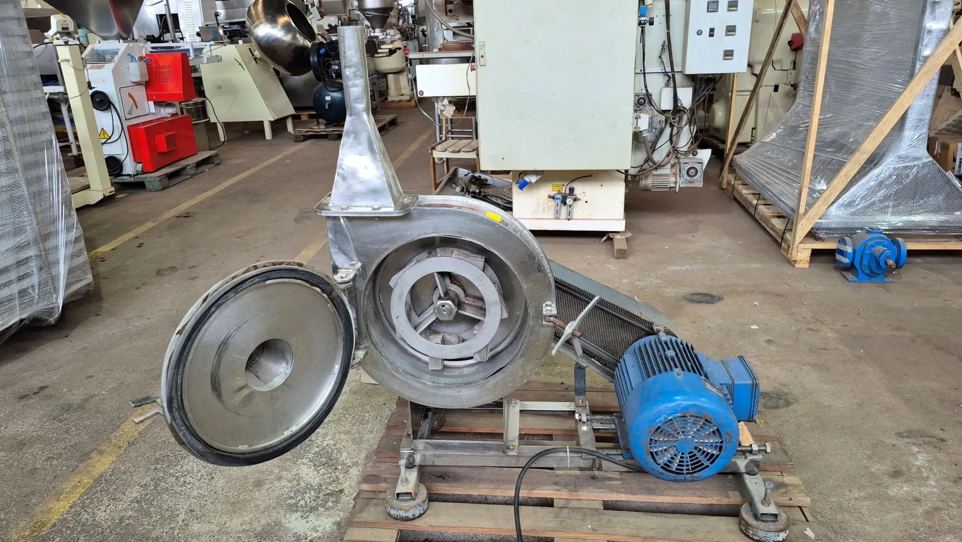 Moinho de martelo marca Vieira modelo MCS 350 com potência de 10 CV. Fabricado em aço inox 304. Não necessita de fixação no solo. Alimentação contínua por aspiração, desenvolvido para micronização de grãos, cereais e especiarias. Aplicável em mais de 150 tipos de produtos entre alimentícios, cosméticos e farmacêuticos, com peneiras de moagem com furações a partir de Ø 0.3 mm. Moagem de grãos, cereais e especiarias, formulações pré-mix, produtos farmacêuticos, produtos cosméticos e reprocessos. É possível alcançar padrões granulométricos de até 100 MESH, dependendo do produto a ser processado.