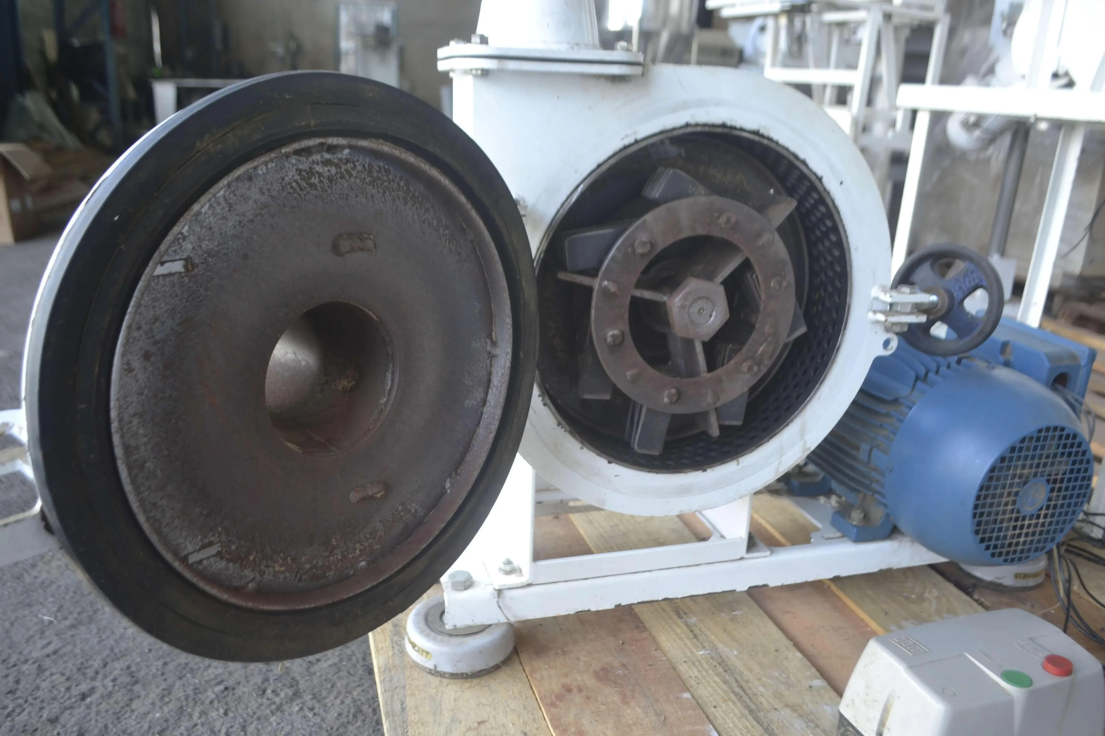 Moinhode Martelos marca Vieira modelo MCS 280. Potência 5 cv. Aplicado em mais de 80 tipos de produtos alimentícios. Moagem de grãos, cereais e especiarias, bem como moagem de formulações Pré-mix e moagem de reprocessos. Proporciona uma excelente qualidade aliada a uma produtividade industrial a partir de 30 kg/hora na moagem micronizada com peneira 0.3 mm (Furo Cônico), e que possibilita o alcance de padrões granulométricos de até 100 MESH dependendo do produto a ser processado.