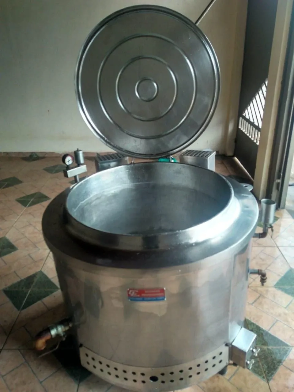 Panelão de cozimento 200 litros. Equipamento em aço inox total com alimentação à gás.