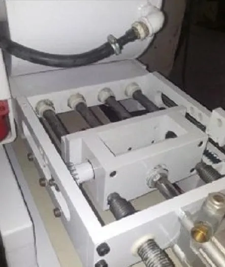 Dosadora de chocolates Piróg semiautomática 8 bicos. Equipamento pneumpatico preparado para dosagem de barras de 1 Kg (bico único).