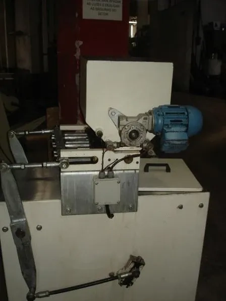 Dosadora de chocolates 52 bicos Piróg. Equipamento com duas cubas, ideal para produtos como gotas, bombons e tabletes. Largura: 450 mm. Motor: 3 CV. 220/380 v. 1710 RPM.