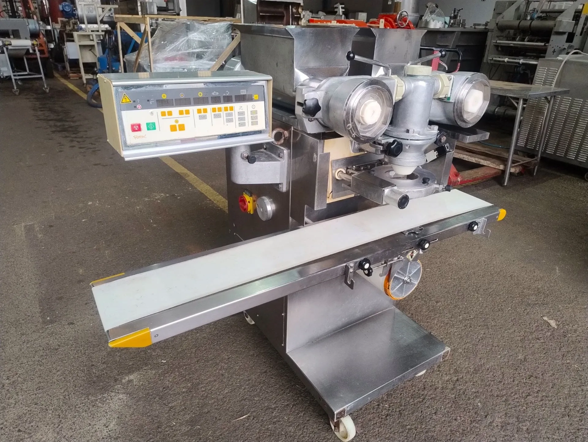 Produtora de salgados e doces marca Rheon modelo Cornucopia KN170. Origem Japão. A Cornucópia é um dos mais versáteis equipamentos para fabricação de doces e salgados recheados do mercado global, destinada a grande variedade de produtos típicos e tradicionais dos mais diversos países. Salgados fritos e assados, doces de festas, cookies, pralinês, tortas de frutas, doces e pães cozidos no vapor etc.